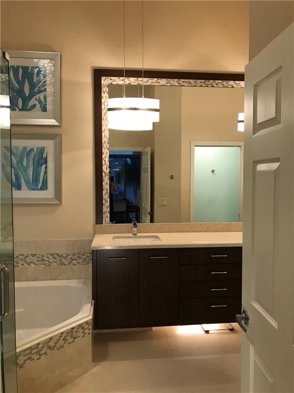 Beautifully updated 3 bedroom 2 bath, 45 ft. Lap pool home with amazing lake views. BRAND NEW ROOF!!, tropical landscape. 12 ft. ceilings. Move in ready, many upgrades. Accordion Hurricane shutters. Granite and quartz counter tops, remodeled bathrooms and kitchen, Stainless Steel appliances. 33"x 33" porcelain tile floor throughout. Large Master bedroom with view of pool and lake. Built-in walk-in closets. Newly painted exterior. 24 hour manned gated community, clubhouse, tennis courts, gym, playground.