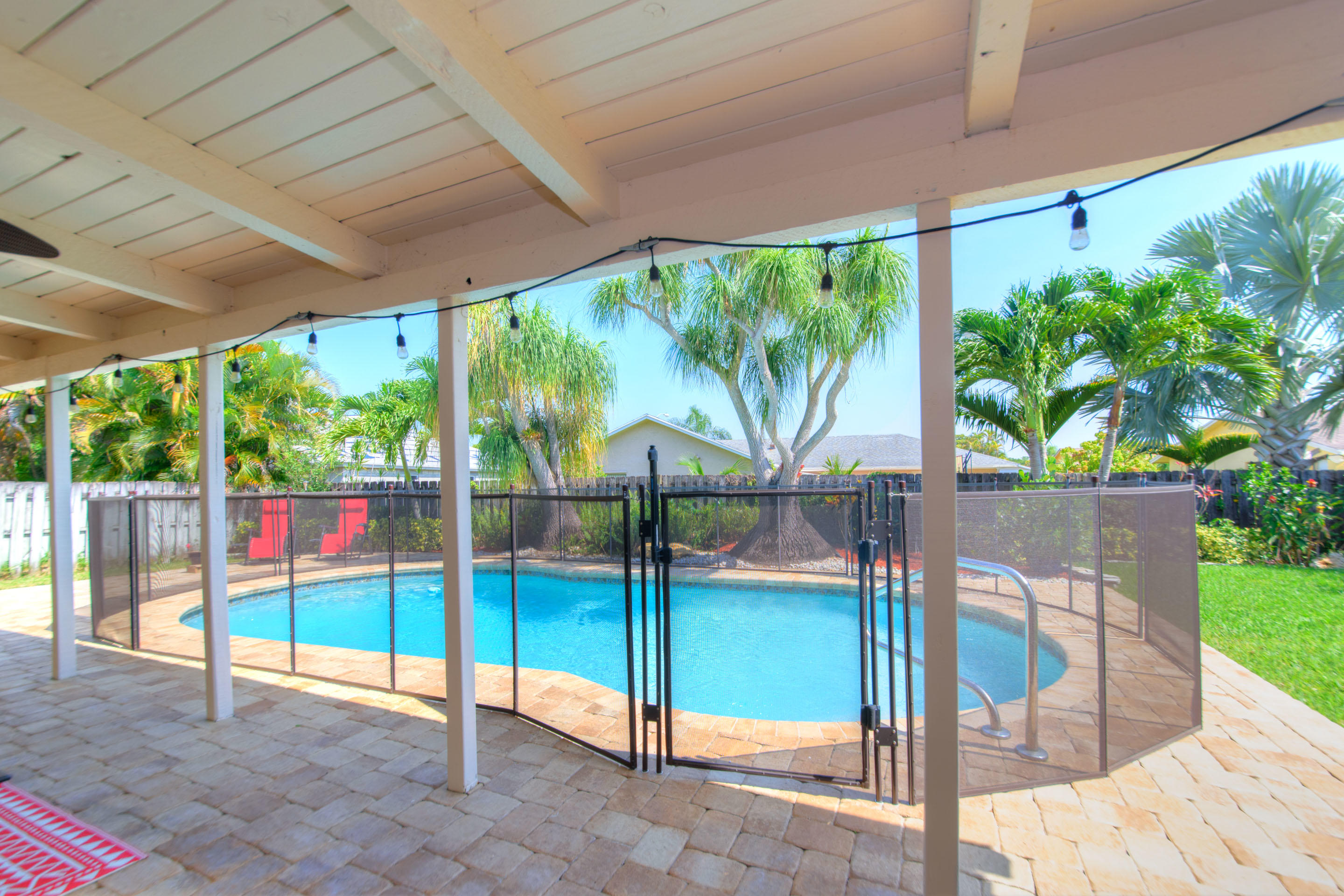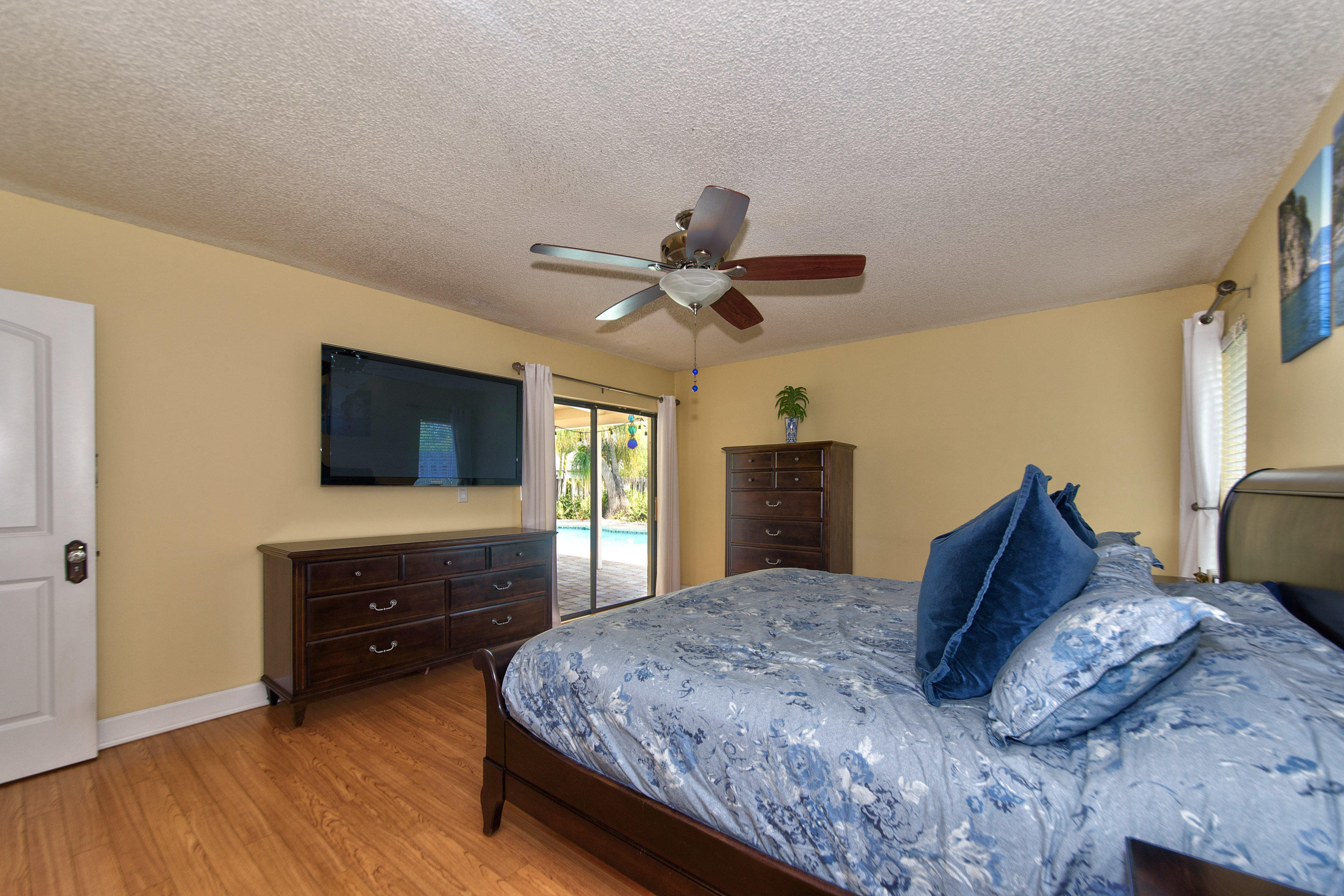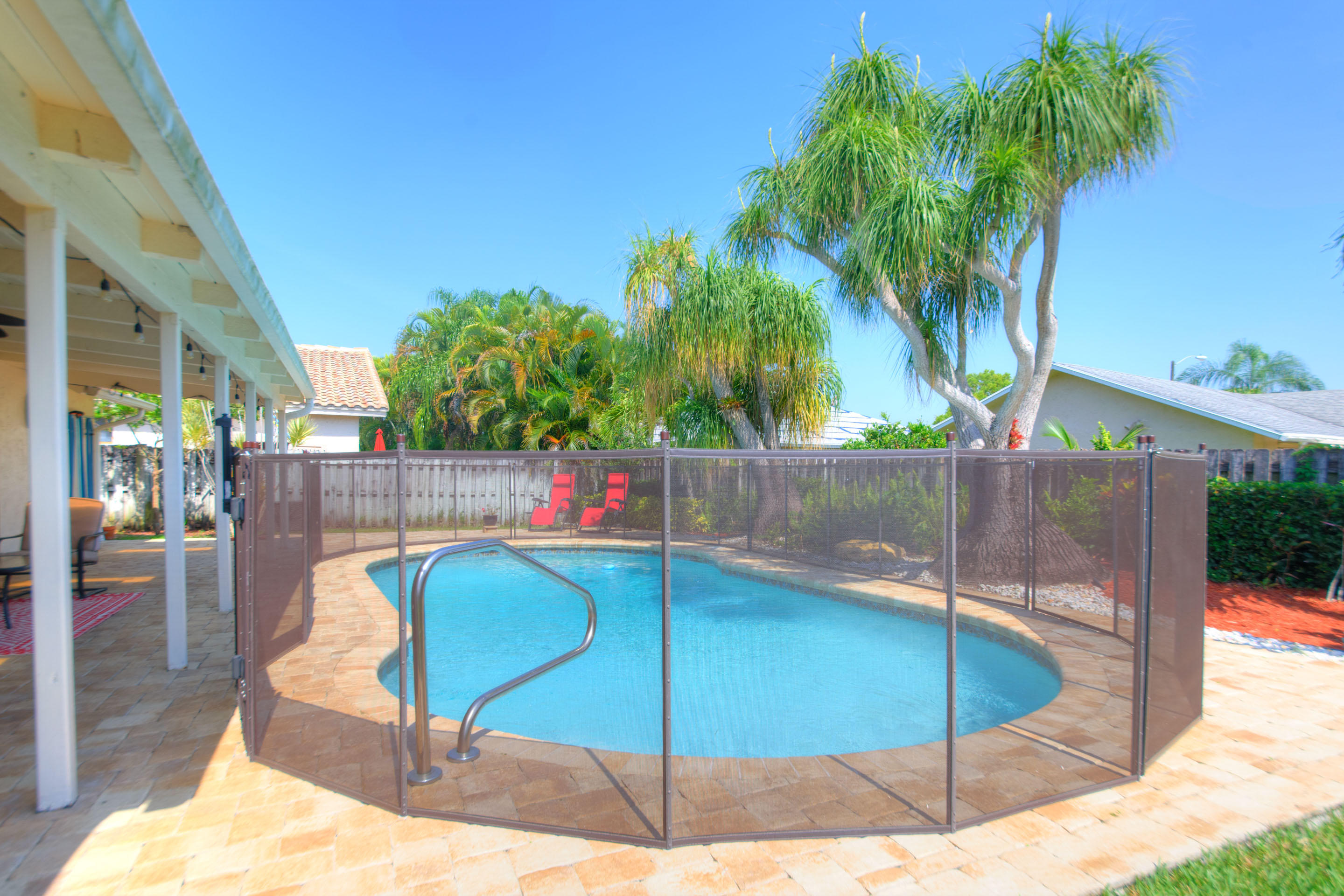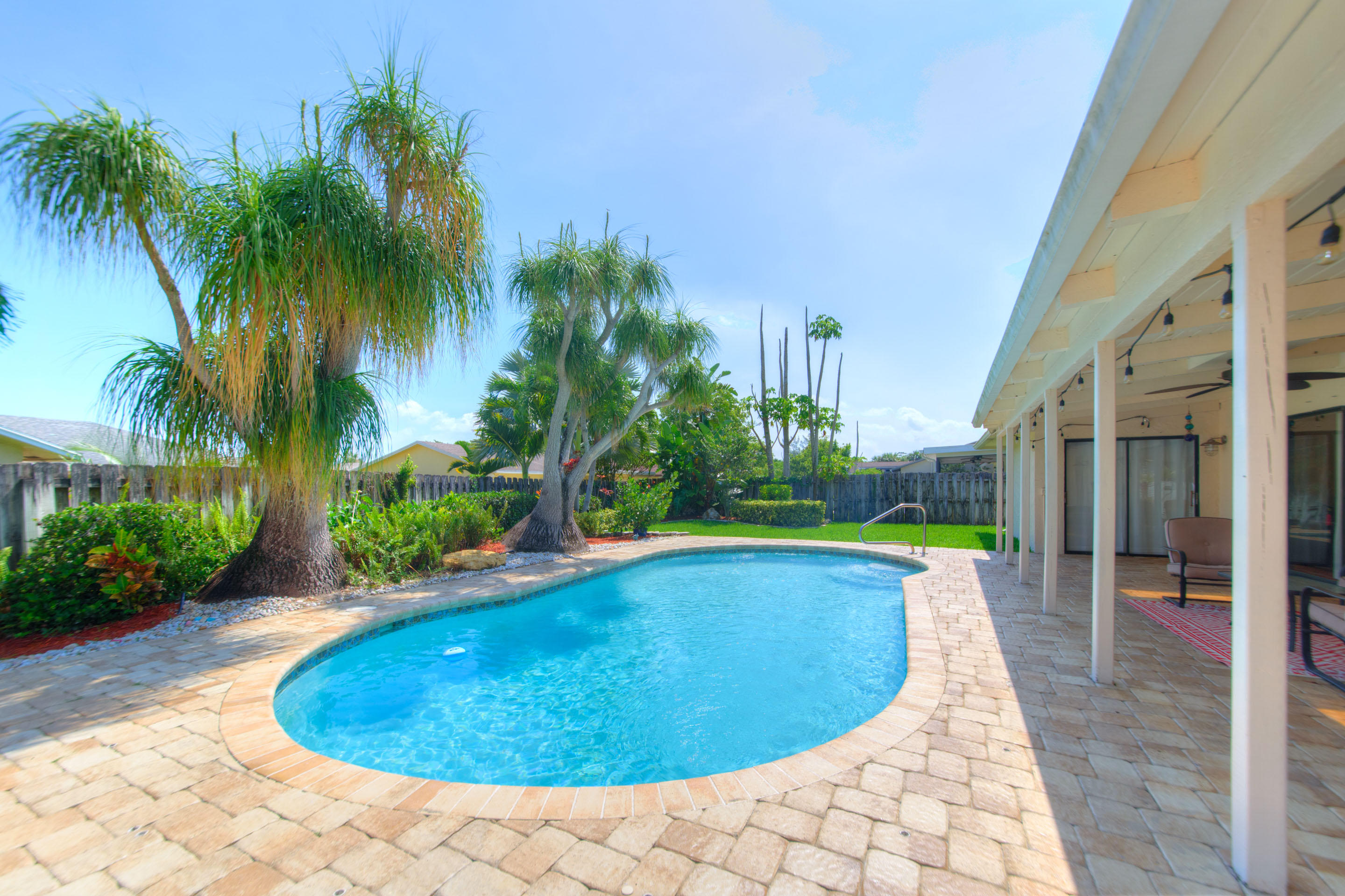 Fully renovated 3/2 pool home in the Cimarron section of Loggers' Run. Open concept floor plan with vaulted ceilings, Mexican Saltillo tile, wood flooring, and no carpet! Kitchen features granite counters with stainless steel appliances, counter seating, and pass through window to pool deck. Huge master bedroom with walk-in closet, and his and her vanities. Travertine tile in the guest bathroom with cabana door. Oversized two car garage with work bench and pull down attic stairs for plenty of attic storage. House protected with impact rated windows, impact rated garage door, and hard wired alarm system. New interior doors with antique glass hardware. Dining area could be converted to fourth bedroom or office as needed. Large wood-burning fireplace and mantel.