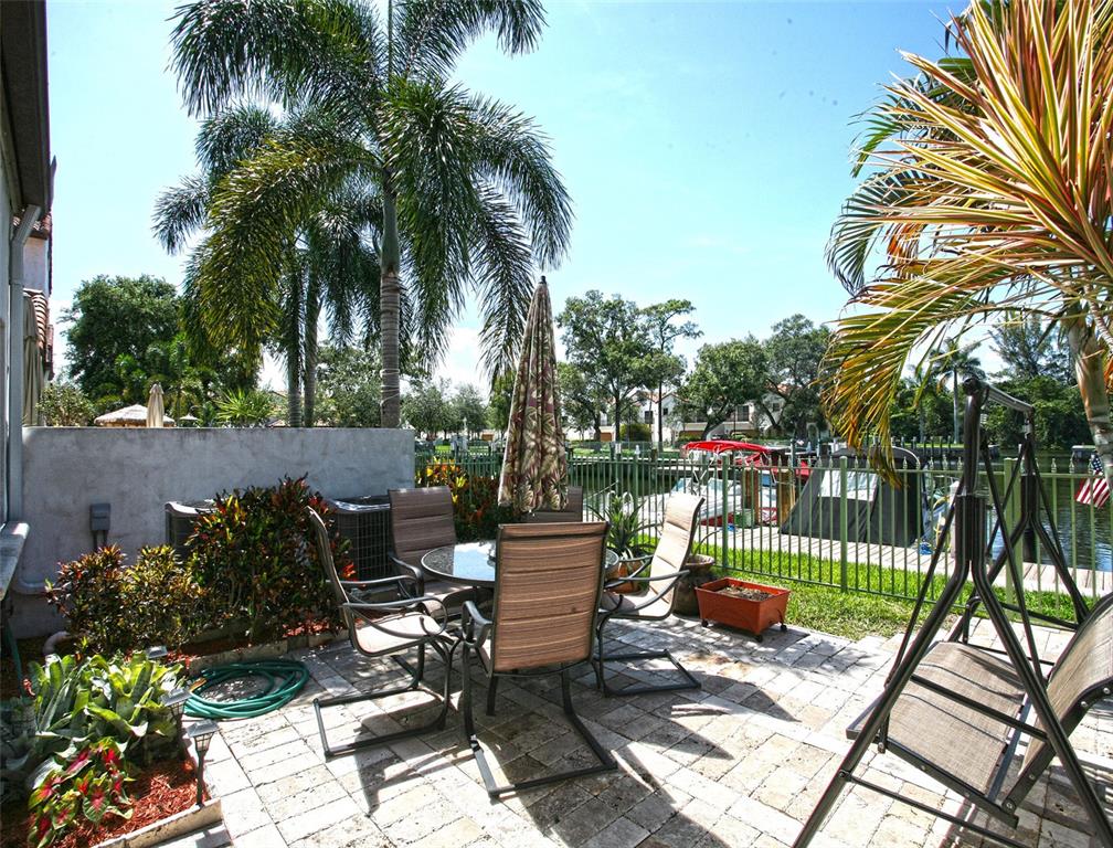 Model Town home in prestigious waterfront gated community. Unit includes a deeded a boat dock steps from the patio (incl power & water). This original builders model unit has 3 large bedrooms with 2.5 baths, updated Kitchen with top of the line appliances and granite counter tops. Barrel tile roof, hurricane impact windows and doors. Separate connection and circuit breaker panel for generator. Beautiful gated garden with grassy area for entertaining.