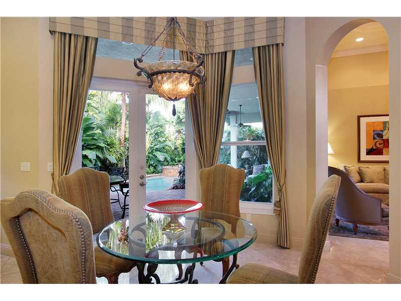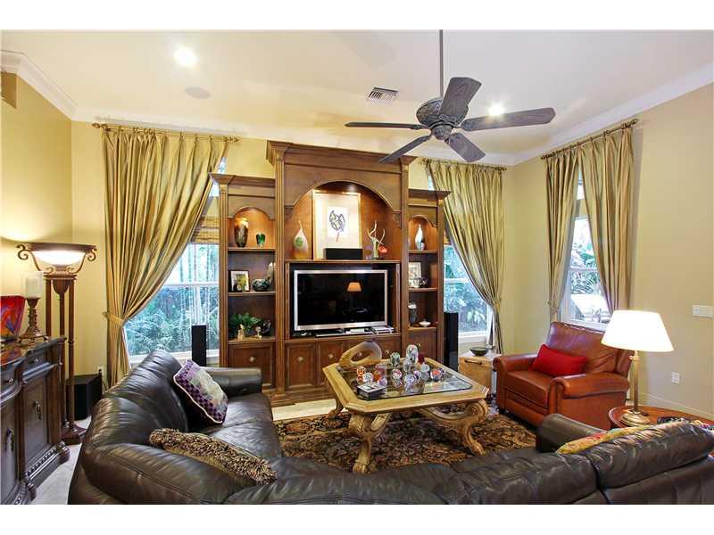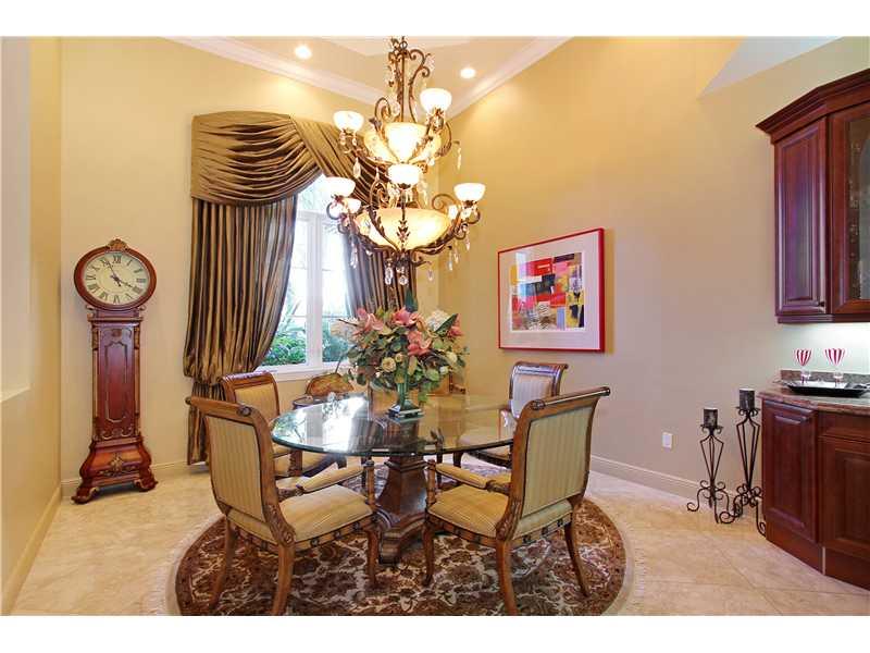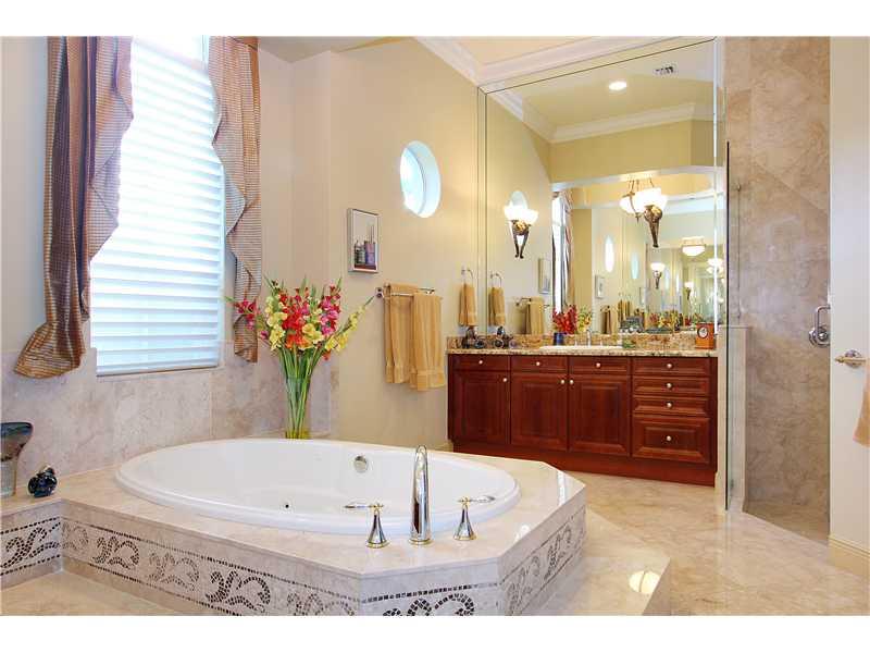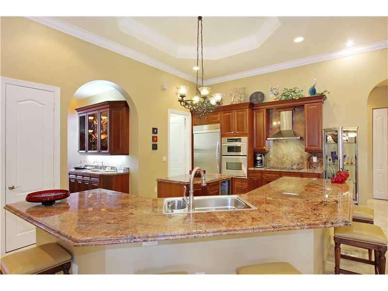 Beautifully presented one level Mediterranean inspired 4BR/3BA/2CG pool residence is certain to please. The foyer entry flows to dramatic formal living and dining rooms with impressive 13' to 17' tray ceilings and opens to exquisite chefs kitchen with ce nter island and wet bar. Large family room and breakfast nook, custom drapery, marble floors, impact windows and doors. Outside boasts a delightful covered loggia, sparkling pool with wet shelf and a summer kitchen ideal for entertaining. Generator Inc.