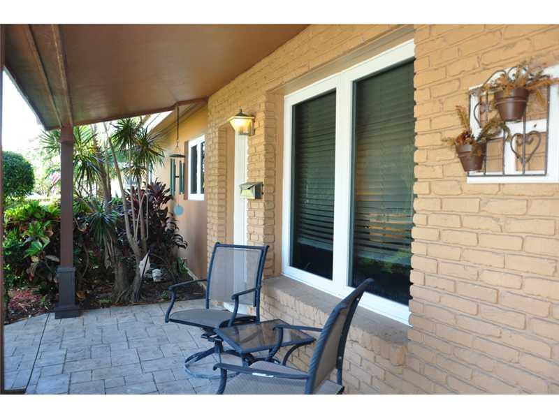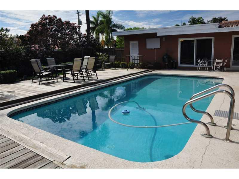WELCOME HOME! This 3 bdrm pool home is situated on a LARGE lot in the esteemed waterfront community of Pompano Shores offering a REMODELED kitchen--GRANITE, hardwood cabinetry w/ pull-out shelves, QUAINT front porch and TREMENDOUS PRIVATE backyard (no nei ghbors in back)--pool, wood deck, beautiful landscaping...IDEAL for entertaining or just relaxing. NEWER IMPACT WINDOWS & sliding glass DOORS, A/C, washer, water heater. Steps to PRIVATE school, house of worship, shops, & restaurants...Minutes to BEACH.