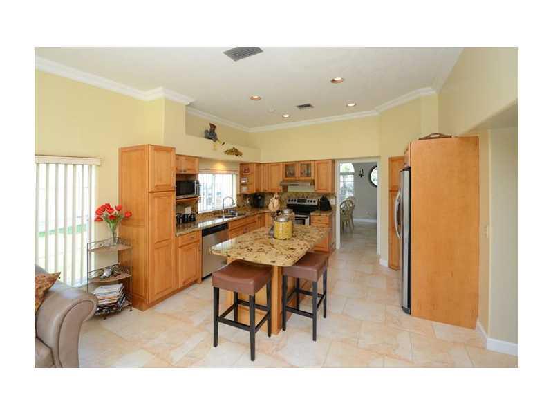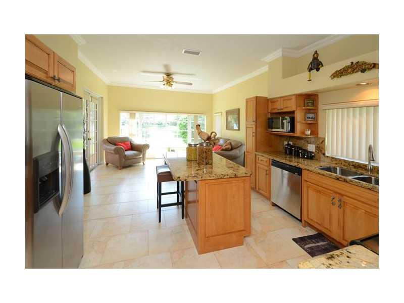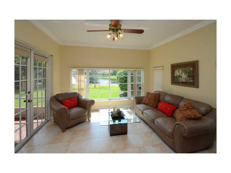 Gorgeous home on oversized, waterfront lot in Laguna Springs 1! Absolutely move-in condition. Renovated kitchen with wood cabinets, granite counters, stainless appliances, island. Neutral décor, tile & hardwood floors, no carpet. Master suite upstairs with a balcony & water views. Large screened patio. Both bathrooms renovated. Custom closets. Roof new in 2007. Weston "A" rated schools, walk to the Town Center. Community pool & basketball courts. Easy access to I 75 & 595. Don't miss this one!