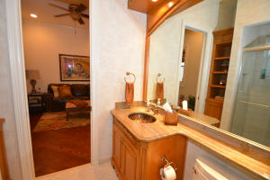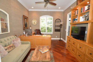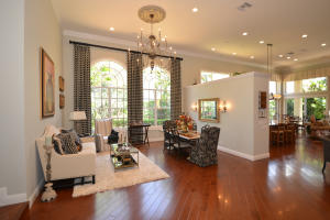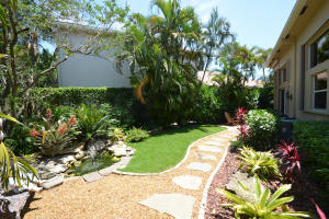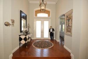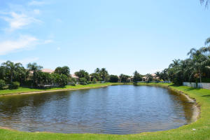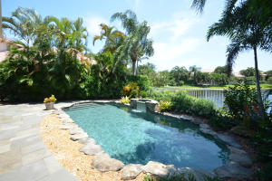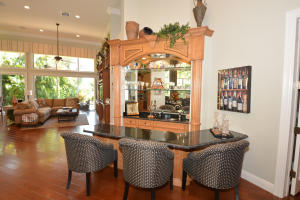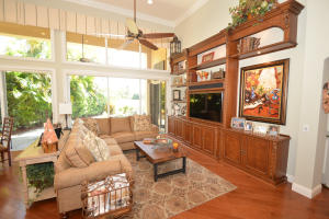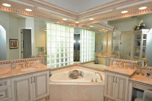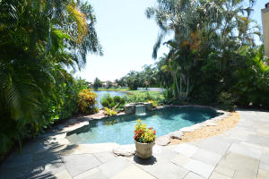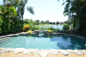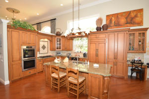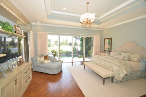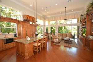 Enter into this exquisitely upgraded home through an elegant impact glass double door entry. The wide lake views fill your senses immediately! This rare one-story home of 4 bedrooms & 3 baths located on an oversized lot with lovely gardens & extensive landscape design features the finest of finishes offering volume ceilings with crown moldings;elegant hardwood floors with upgraded baseboards;a remodeled gourmet island kitchen featuring 42" birdseye maple cabinetry with roll-outs; granite counters, stone backsplash,top-of-the-line stainless steel appliances & a charming breakfast nook; a stunning bar with granite counter & wine rack; a magnificent built-in Family Room entertainment center with surround sound; a stately built-in office/library; built-in armoir & custom closet design in the