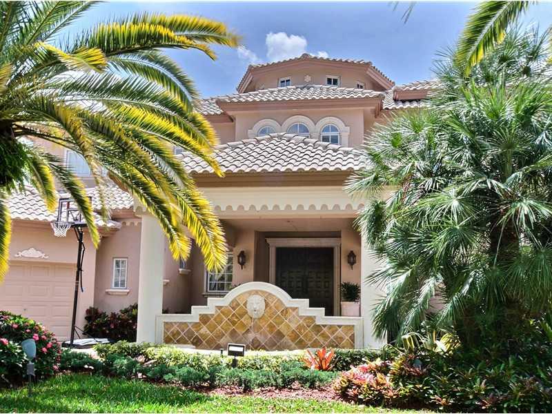 Breathtaking! Stunning! Spectacular 1/2acre south facing, 142feet on 120 acre navigable Lake Coral Springs.Boat dock. "A Palm Beach Style" custom estate home. Mizner inspired grandeur. Exquisite architectural details, exceptional quality, magnificent roof lines provide fantastic interior ceilings. Portocochere Grand foyer, two story picture windows in living room. Enormous patio & loggia, outdoor kitchen.Impact windows. Marble floors, built-in offices, entertainment center, butler pantry, luxurious master