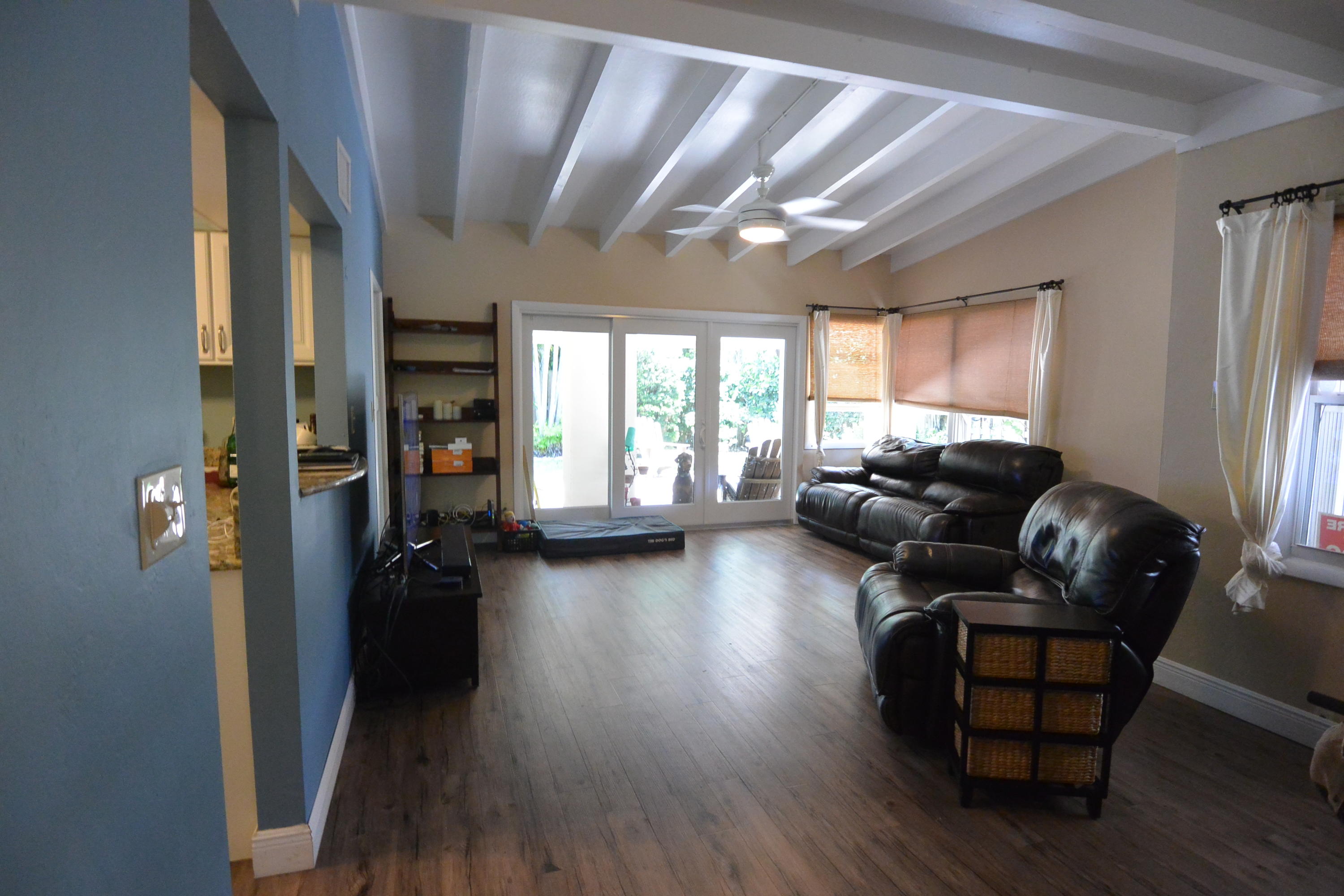 Lake block 1950 mid-century cottage just steps from Flagler Drive. Two bedrooms and one bath plus a Florida Room that could be used as a 3rd bedroom. Updated flooring, kitchen with granite. Vaulted beamed ceilings in the open plan living area. Tropically landscaped yard with room for a pool. Covered back patio. A fabulous price for a home east of Washington!