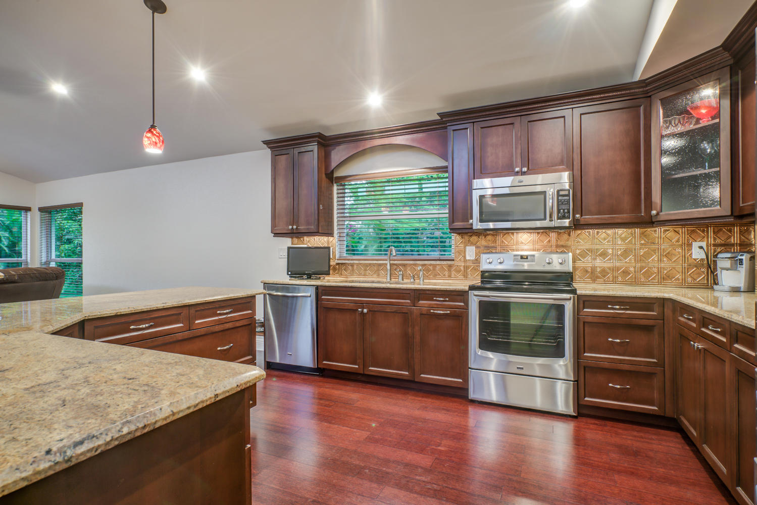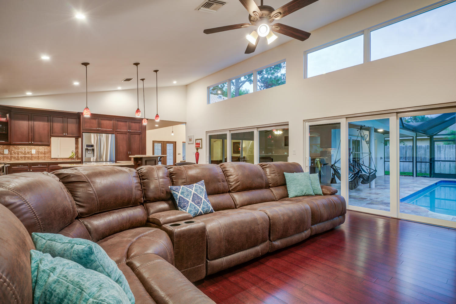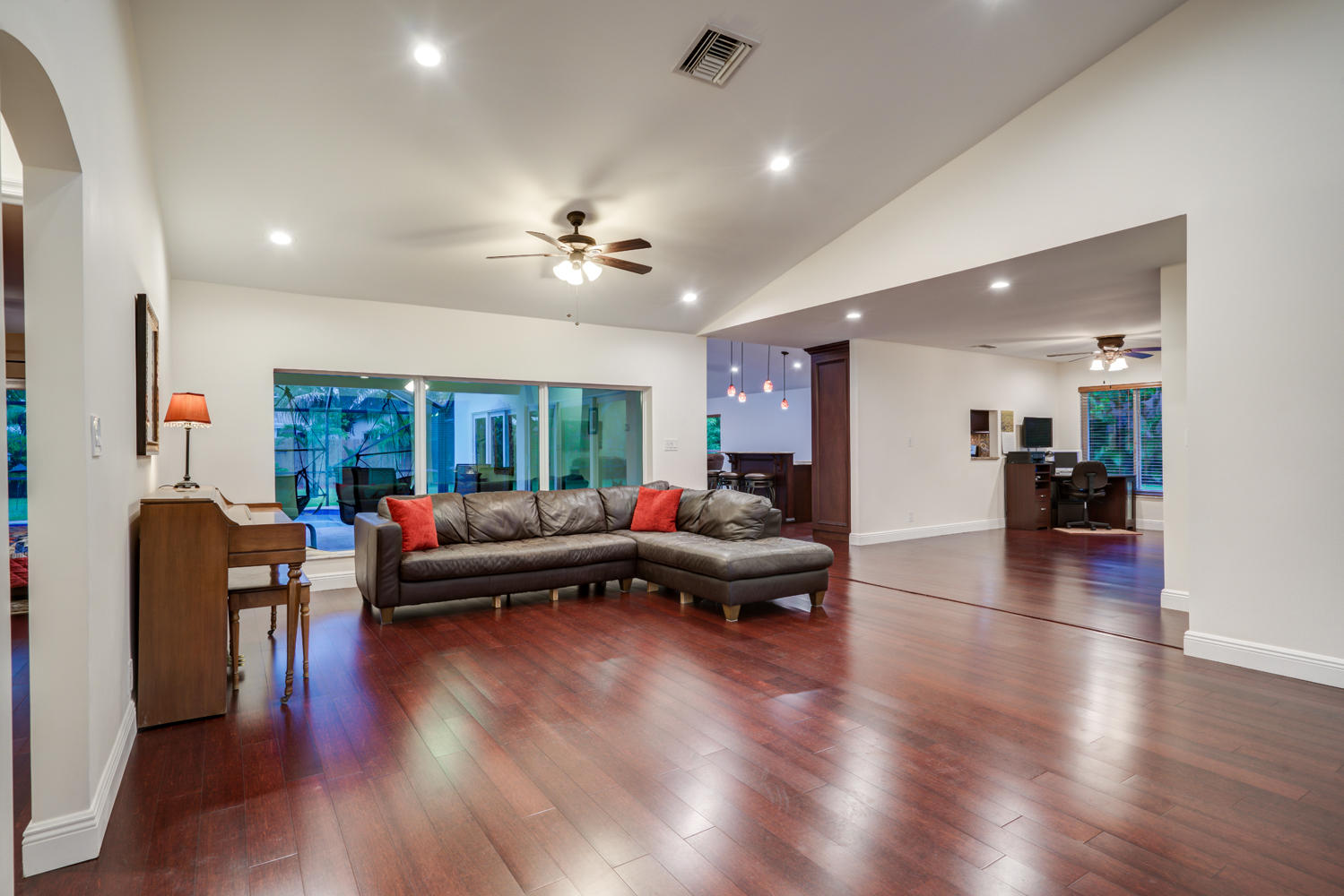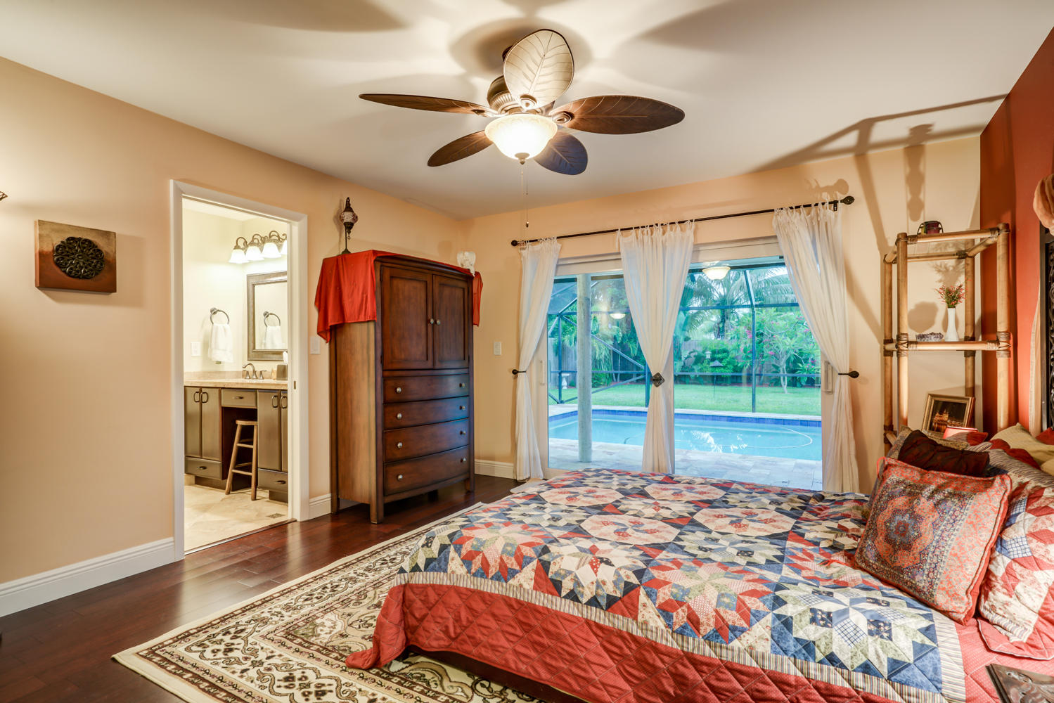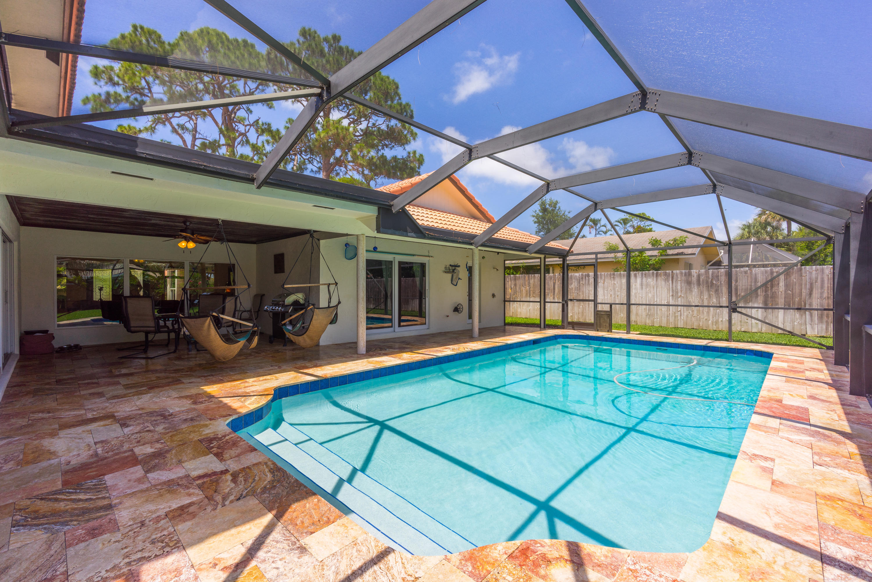 Beautiful 1 Story on large lot & very Private end of cul-de-sac location ~ 4BR, 3 full/2 half baths ~ updated kitchen newer appliances ~ Bamboo Hardwood floors ~ Custom Closets~ replaced hot water heater ~ High ceilings throughout living areas ~ Screened in Pool/Patio w/Tounge-in-Grove Wood Ceiling~ Cabana half bath ~ Roof replaced Sept 2000~Huge fenced rear & side yards with double gate for both boat & RV ~ Parking accommodates many cars! Beautiful Concrete Circular Drive ~ Lush landscaping ~ Great curb appeal! Great house for an active family & pets to play in this huge yard!