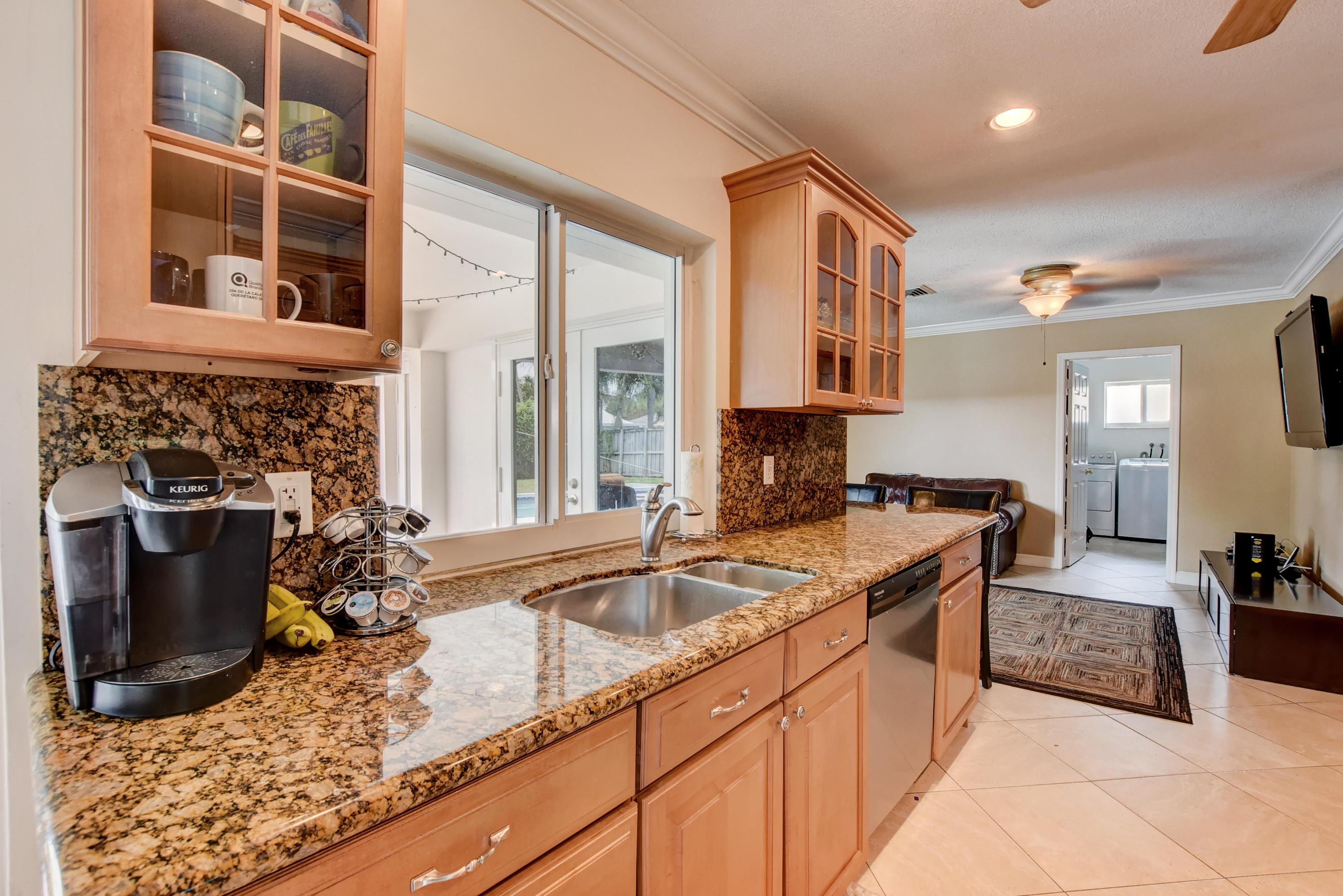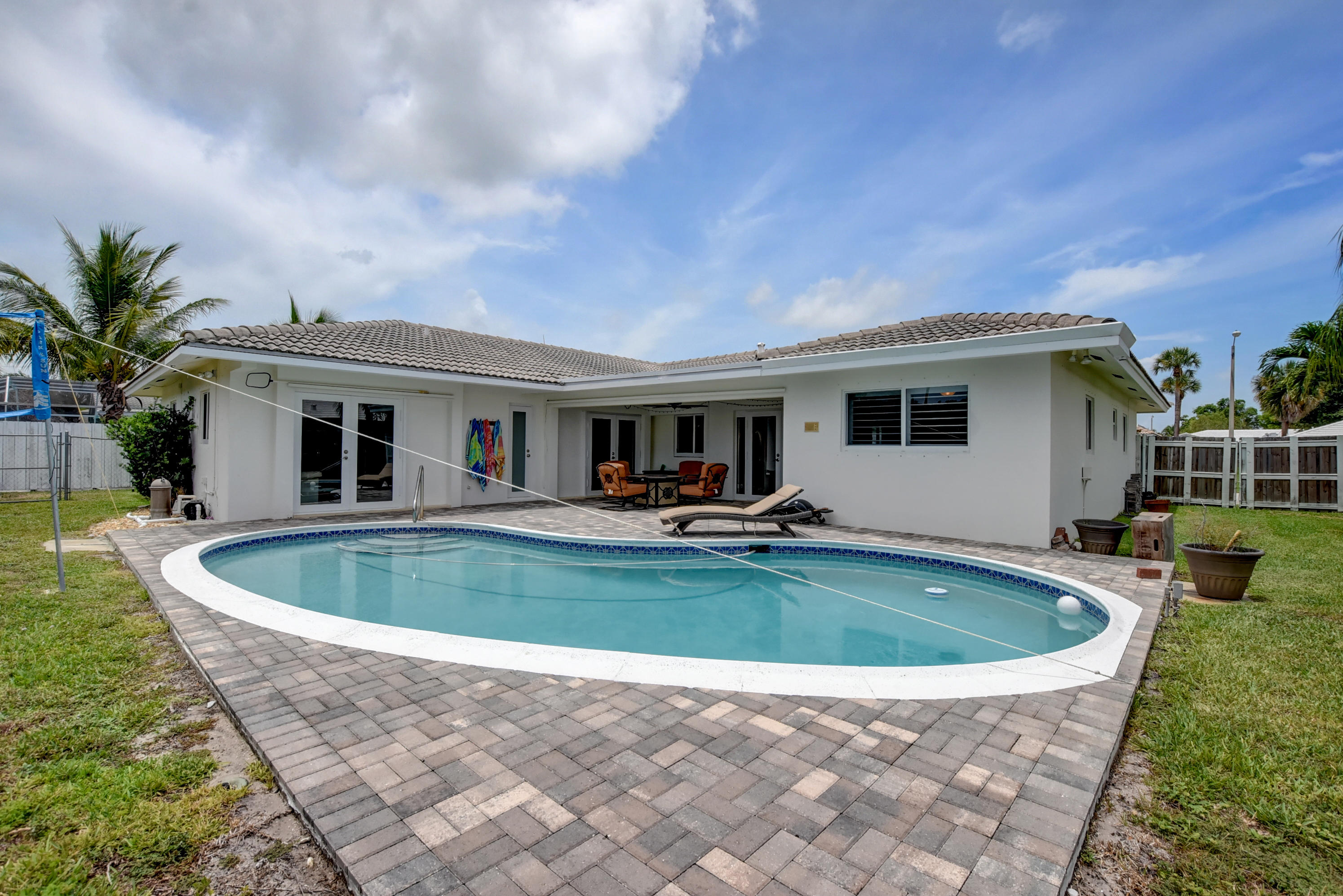 Rarely available 5BR/2BA pool home in highly sought after Boca Square. This home features an updated kitchen w/beautiful wood cabinets & granite counters, plantation shutters, tile & laminate flooring, crown molding in living areas and 3 bedrooms, 4''baseboards, and a large interior laundry room. Updated master bath has large, step-in shower & dual sinks. Exterior features include barrel tile roof, paver patio, & circular driveway. Large fenced yard has gate access & side space for boat/trailer storage. House has hurricane impact windows, impact French door in rear bedroom, newer (non impact) French doors in family room, dining room & master bedroom. A/C replaced in 2013. Fabulous East Boca location near downtown Boca, shops, restaurants, and beaches. No HOA. Excellent local schools!