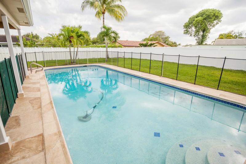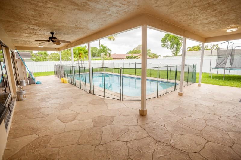 Beautiful, charming home, located in the prestigious Coral Springs County Club neighborhood! Features spacious upgraded kitchen, complete with granite counters, stainless steel appliances, spacious cabinets & large island. Has an open floor plan with crown molding & beautiful stone floors. The master & guest bedrooms have direct access to the pool. Guest bedroom includes cabana bathroom. Large fenced in back yard, 2 car garage & oversized driveway. Close to shopping, schools & dining.Stone floors in all living areas!