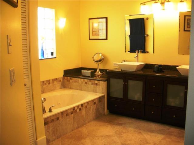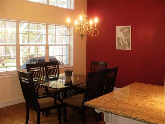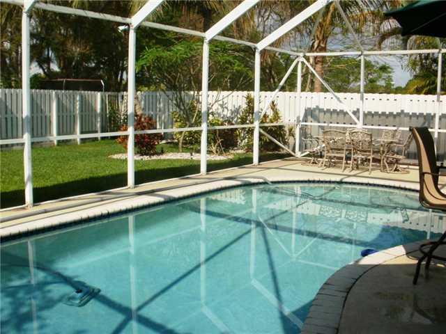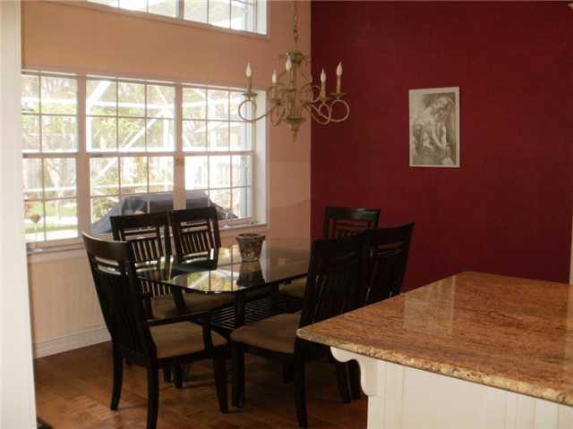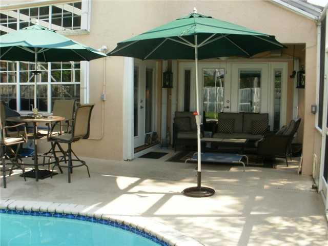 A show stopper with real appeal!Meticulous 3 bdm home w/gorgeous designer kitchen,42 inch light wood cabinets,gorgeous granite countertops w/tumble marble backsplash.Fabulous kitchen faucet fixture!Most of the home has wood floors, except the master and s econdary bedroom.Three sets of newer French doors w/built-in blinds lead out to the patio.You will love the almost new master bath,very chic & beautiful.Solar heated(panels)scrnd pool w/patio area.*huge yard*Accordian Shutters*crown molding*fully fenced*