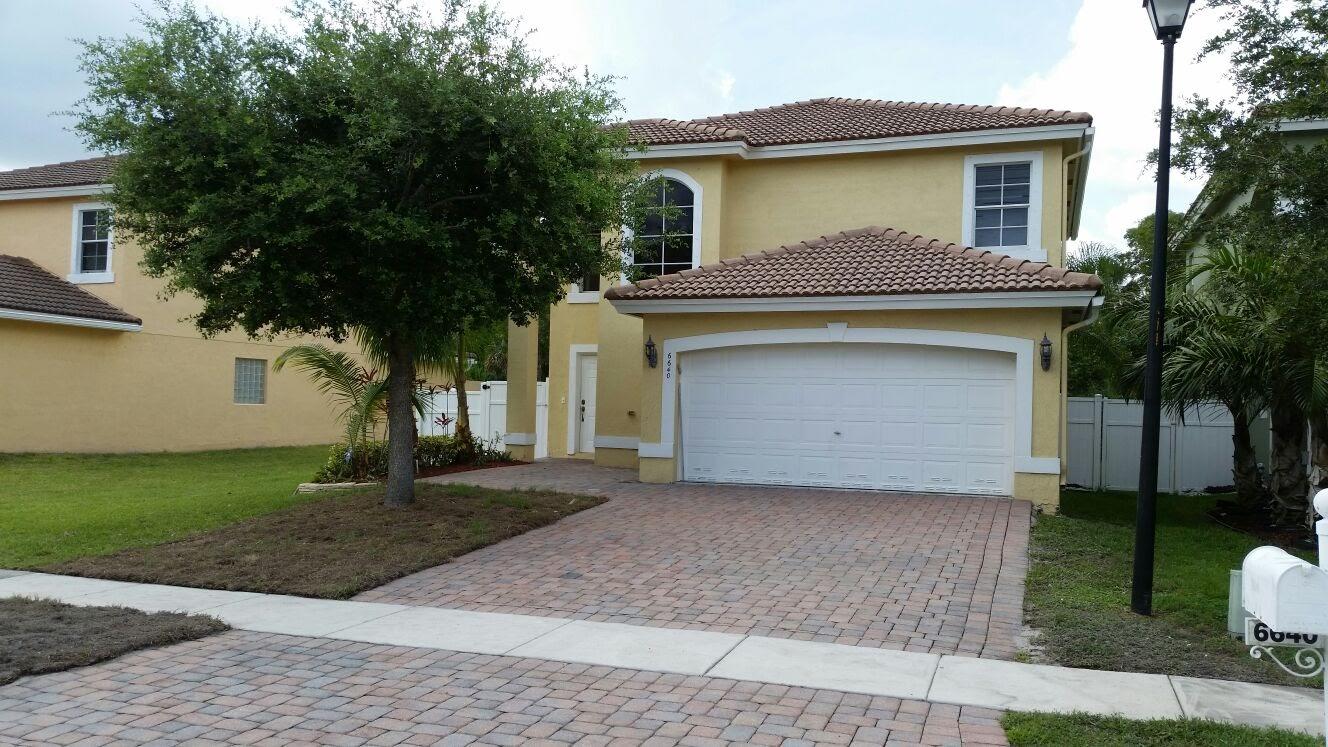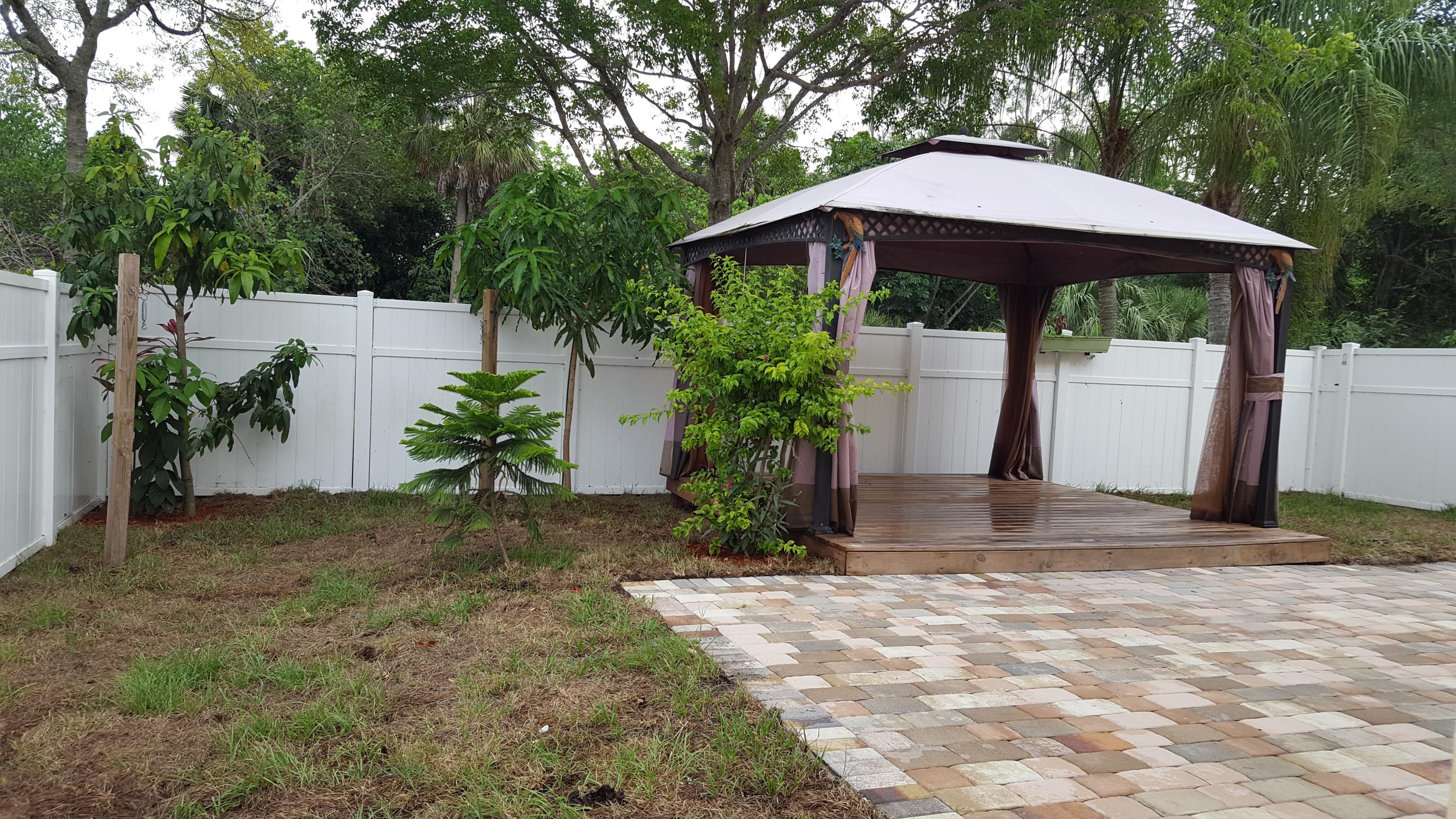 Best price in community, outside painted 6 Month ago, freshly painted inside,Closet cabinets in bedrooms, All fenced in with PVC panels, Paved front and back, new lawn just installed, wood deck with canopy, Mango trees, sprinkler system. no neighbors in back, very private lot. Must see this will not last.Garage converted into a large room with double closets and A/C. easy to convert back if wanted.