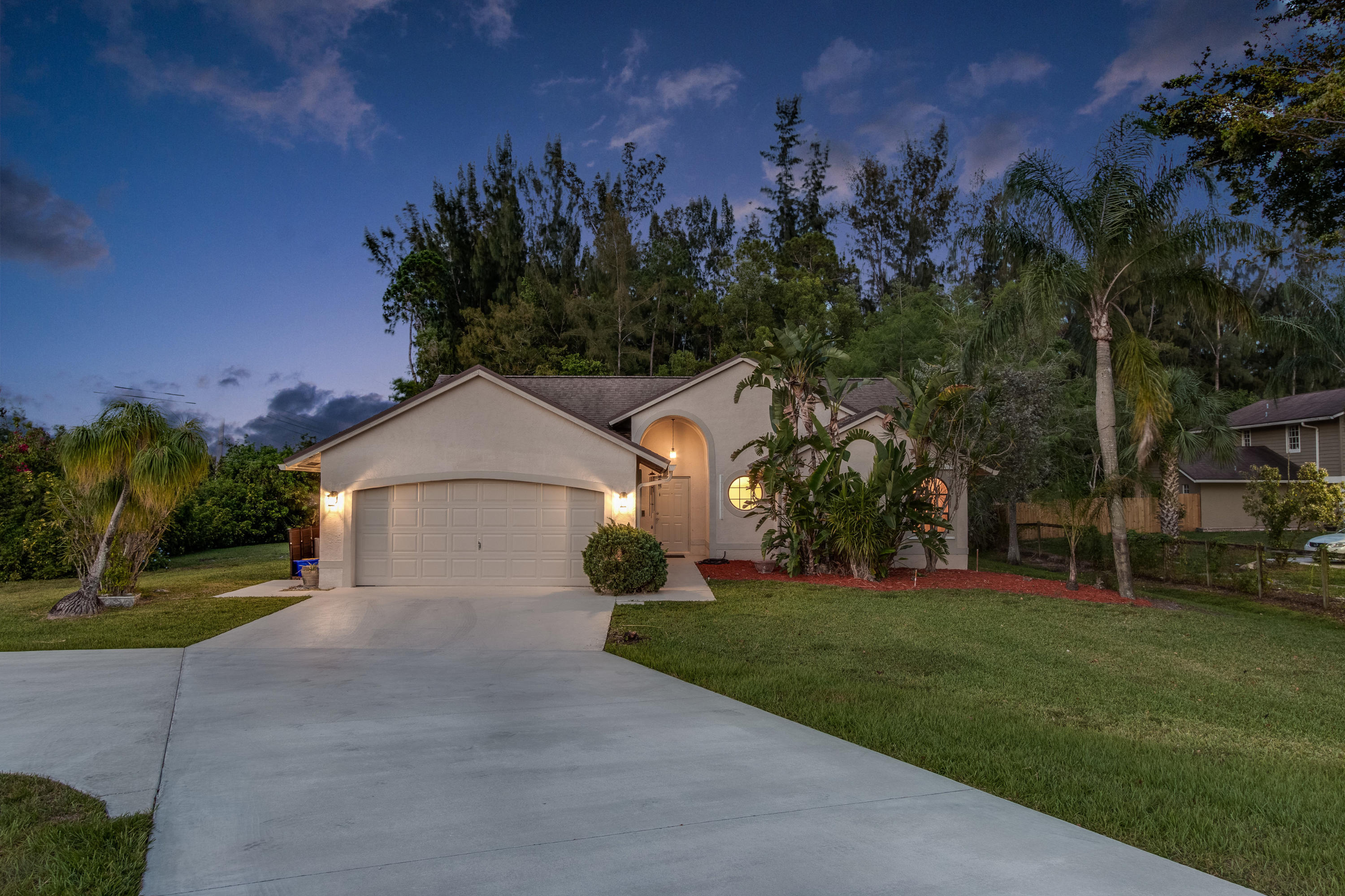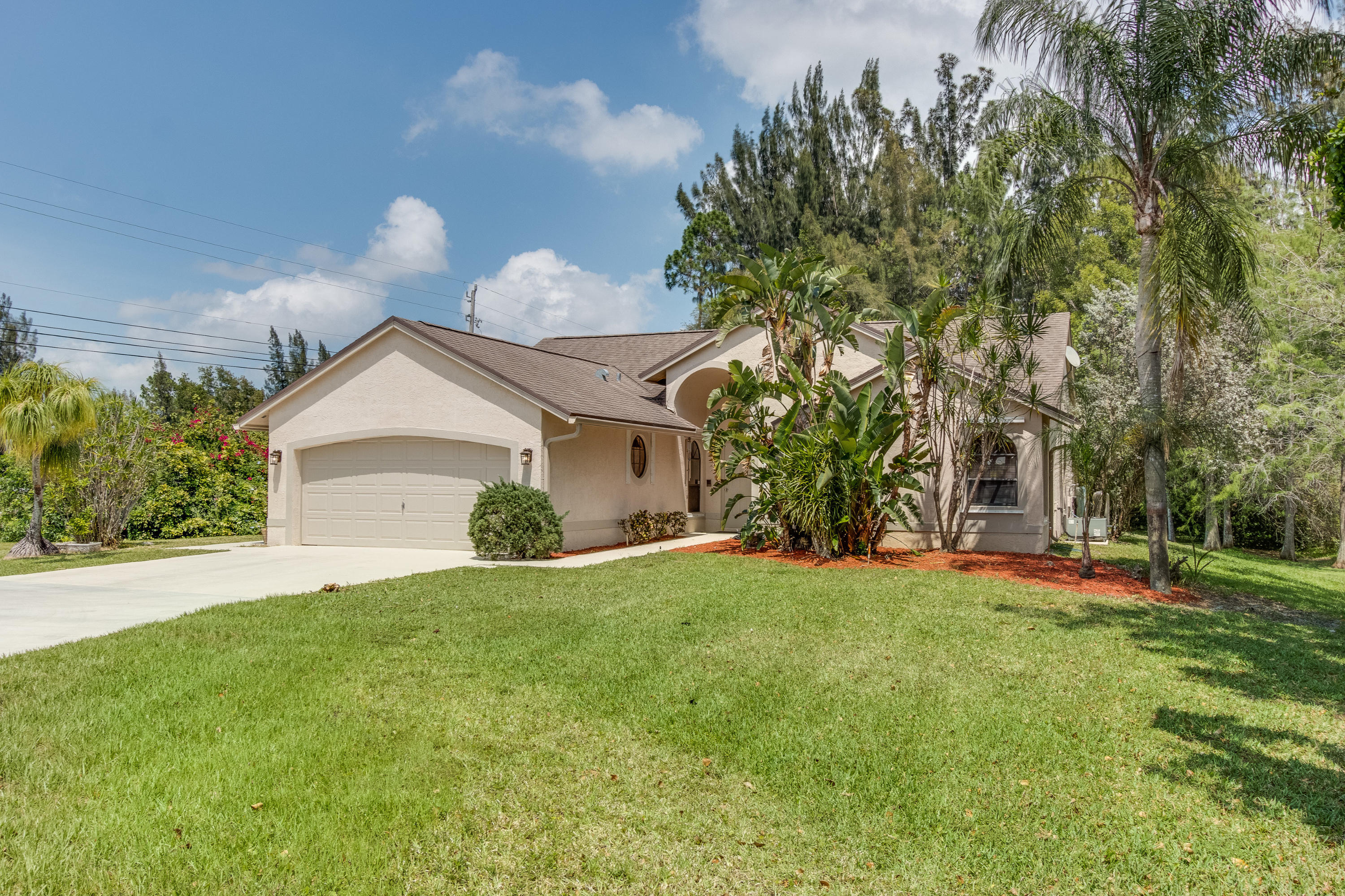 Home for Sale... This turnkey former builders model home is hands-down the very BEST entry level Acreage home on the market! Everything from the entry level price, PAVED road, CBS construction, premium high and dry lot with no pond, dynamite structural integrity & much more! Entering this (3) bedroom (2) full bath country GEM you will discover a 13' vaulted ceiling, bright and airy open floor plan, galley kitchen with pantry that overlooks the charming bay window and breakfast area, formal dining area with floor to ceiling custom mirrors, a spacious 17' x 16' master suite with grand double doors, large walk-in closet, master bath with roman tub, walk-in shower and two vanities. One will also find great features, such as; a central vacuum, home is hard wired for a security system, CLICK