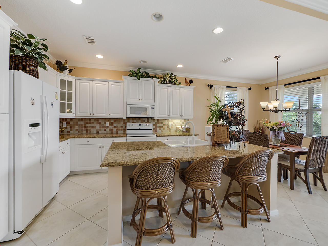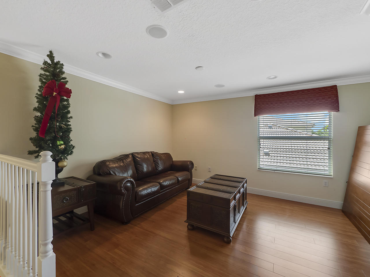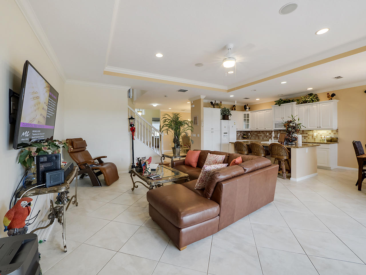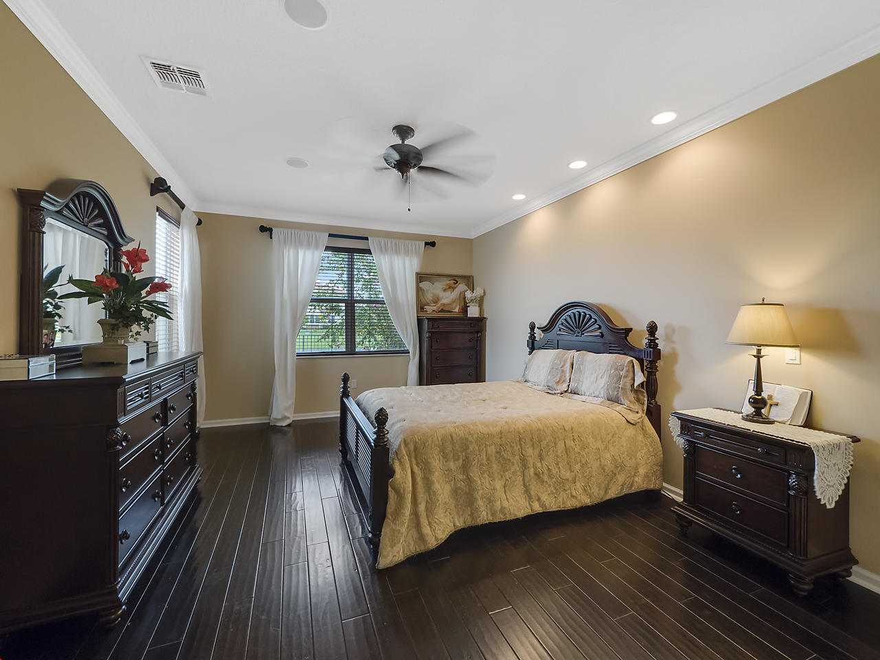 WELCOME TO PARADISE!! THIS HOME HAS ALL THE BELLS AND WHISTLES THAT ONE IS SEARCHING FOR. IMPACT WINDOWS, HARDWOOD FLOORS, WATER VIEWS FROM YOUR FRONT DOOR AS WELL AS BACK PATIO. 3 FULL BEDROOMS/ 3 BATHS PLUS LOFT WHICH COULD BECOME 4TH BEDROOM. CROWN MOLDING EVERYWHERE, WALK IN CLOSETS,NEUTRAL PAINT COLORS THROUGHOUT. FABULOUS EAT-IN KITCHEN WITH EXTRA THICK GRANITE COUNTER TOPS,UNDER CABINET LIGHTING, UPGRADED CABINETS. DIAGONAL TILE, WONDERFUL FAMILY ROOM, UPGRADED FANS AND LIGHT FIXTURES. MASTER BEDROOM AND ONE GUEST BEDROOM WITH BATH ON FIRST FLOOR. RAIN GUTTERS OUTSIDE, FENCED TROPICAL PARADISE WITH EXTRA LARGE PAVER PATIO OVERLOOKING A BEAUTIFUL LAKE! 2-CAR GARAGE WITH PEDESTRIAN DOOR FOR EASY ACCESS TO THE OUTSIDE. THIS HOME WAS A FORMER BUILDER'S MODEL AND IS TRULY OUTSTANDING!!!