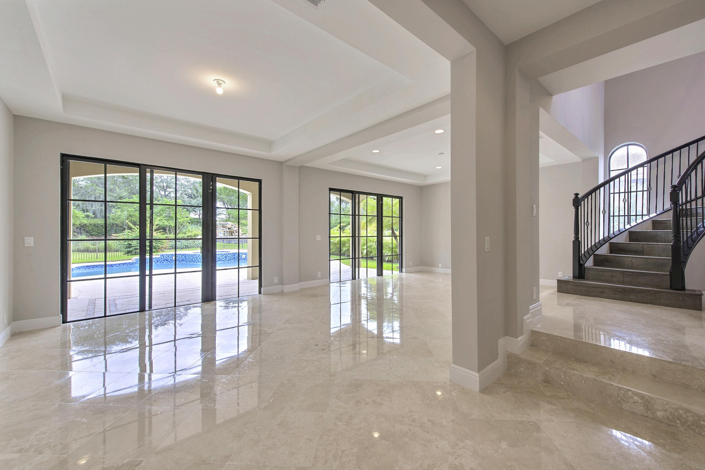 LUXURY LIFESTYLE with Private Marble Deck, Heated Spa and Waterfall in enormous Tranquil yard. New kitchen with quartz countertops and Kenmoore Elite appliances, smooth walls with contemporary color palate, espresso winding grand staircase. Everything is new and completely renovated from floor to ceiling