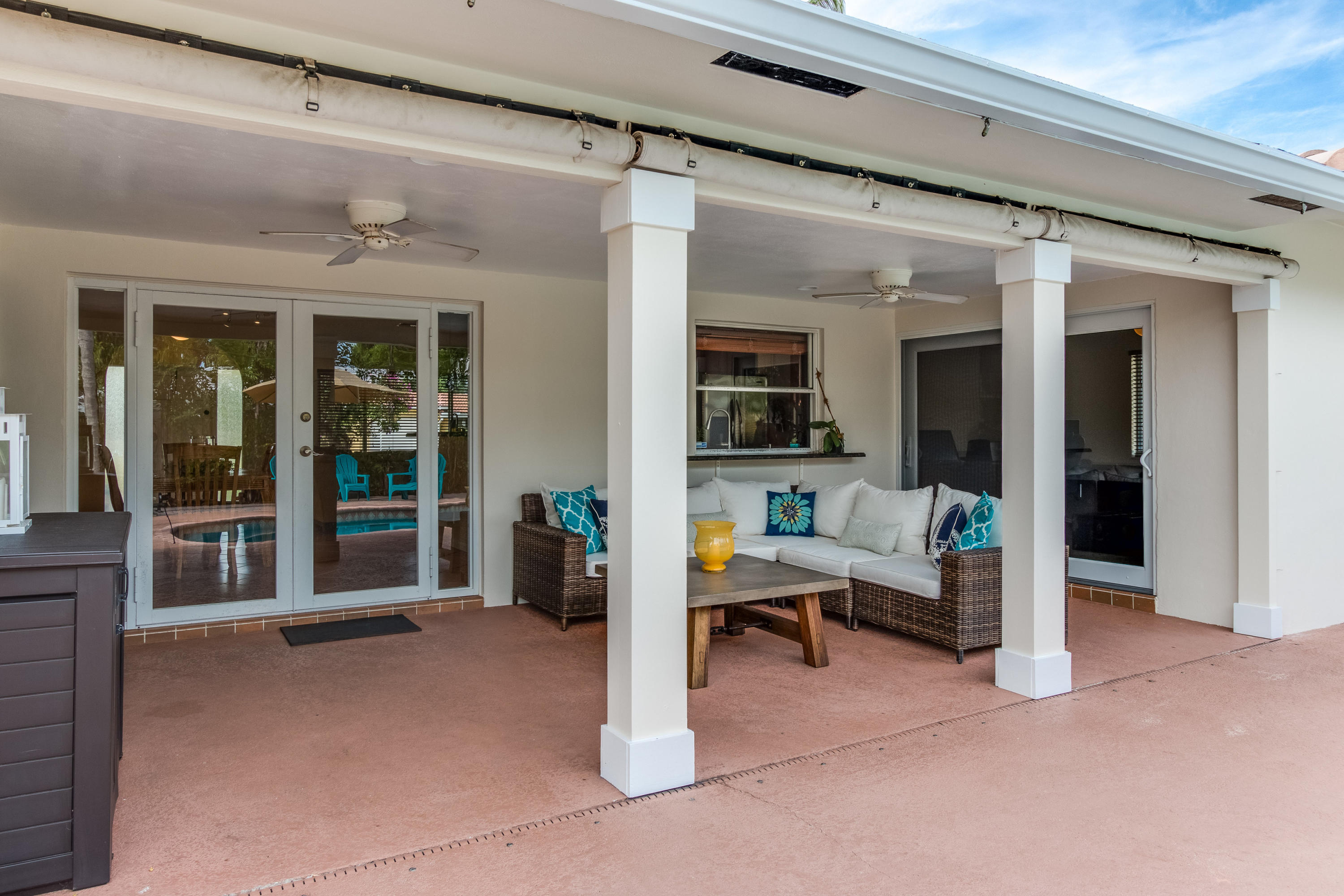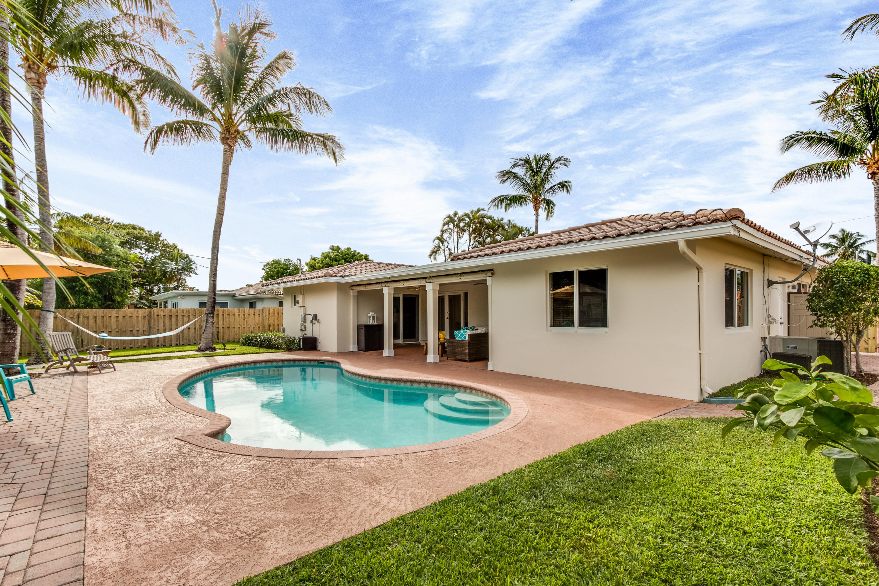 Gorgeous East Boca pool home located on a quiet street in the Boca Woods neighborhood. This great home features 3 beds, 2 baths with a bonus room / den that can easily be converted to a 4th bedroom. This home also has an open floor plan, updated kitchen, 1 car garage and new impact windows and hurricane protection cover all areas. Large covered patio and lushly landscaped yard surround the pool and are perfect for entertaining. The roof is 10 years old and a new A/C was installed last year. This home has it all and is an absolute must see!