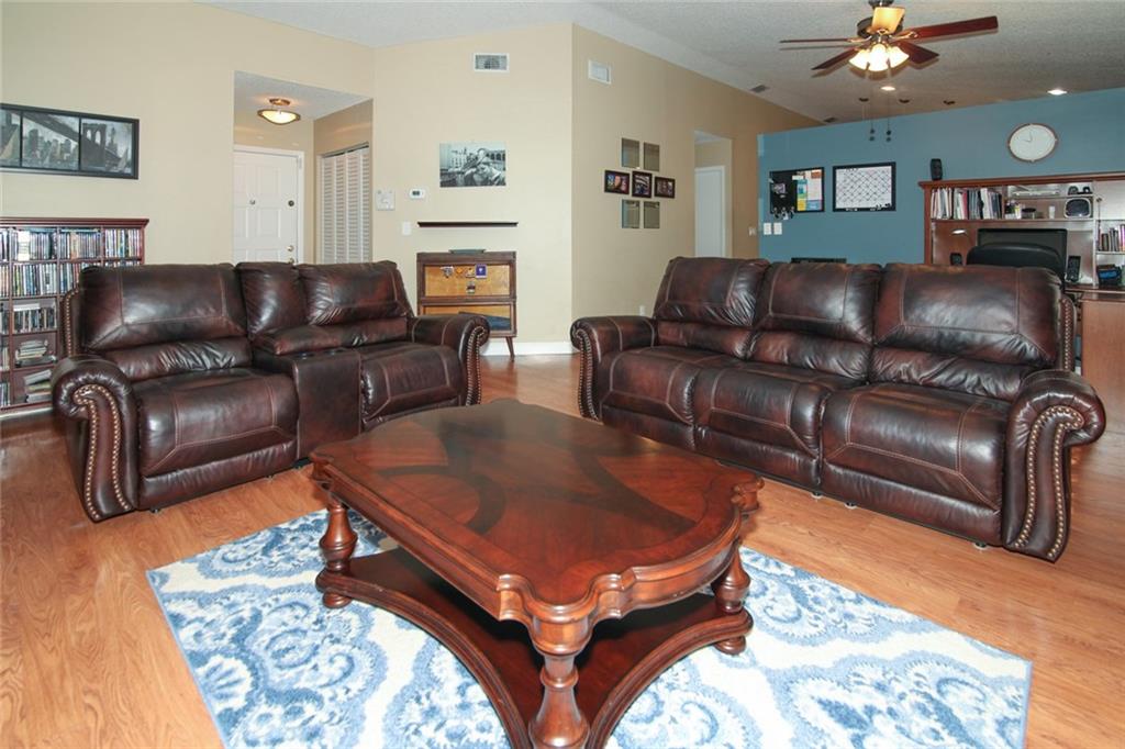 Gorgeous 3/2 home on oversized lot in Quatraine V! Single story, split floorplan with vaulted ceilings. Remodeled kitchen featuring wood cabinets, granite countertops and stainless steel appliances. Large center island with tons of storage. Tasteful laminate flooring throughout living areas & tile in the kitchen. Open floorplan. Two separate outdoor/screened patio areas. Large yard. Roof 2010. Accordion shutters 2009. Water heater 2010.