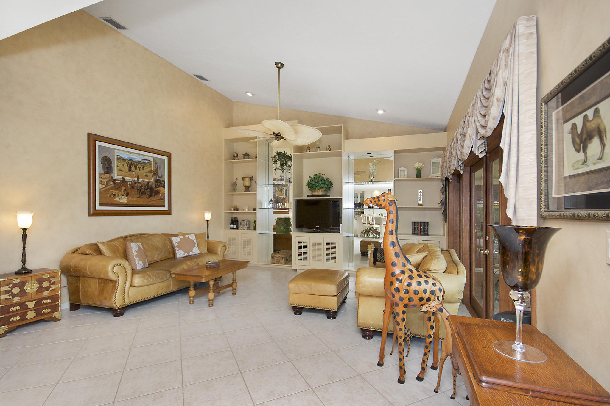 Backing to the park, this charming and quaint home features vaulted and volume ceiilings, custom built in cabinetry in the family room, open kitchen with tumbled marbled counters and backsplash, cream cabinetry, neutral tile flooring, French doors, impact glass, accordian shutters, landscape lighting, California custom closet system, Hunter Douglas blinds,roof 2005 ac units 2015, 2016,and much more, !