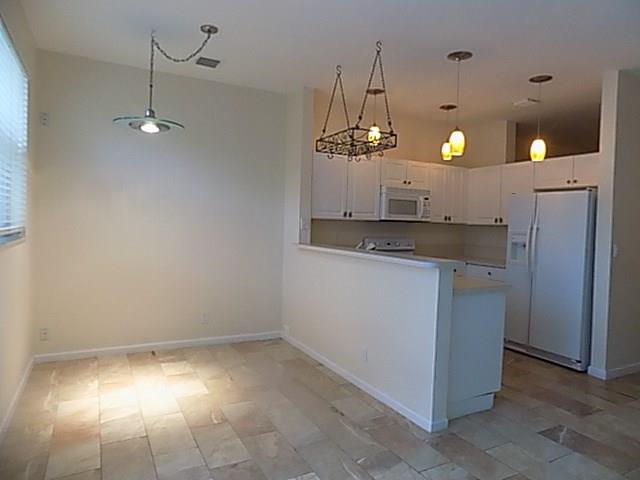 Updated 3 bedroom 2.5 bath unit, with finished room in garage under A/C! Downstairs updated with new light fixtures, all fresh paint, updated kitchen, faux paint in 1/2 bath and unique marble-look tile! Upstairs has updated wood floors, updated light fixtures, fresh paint!! Move right in!