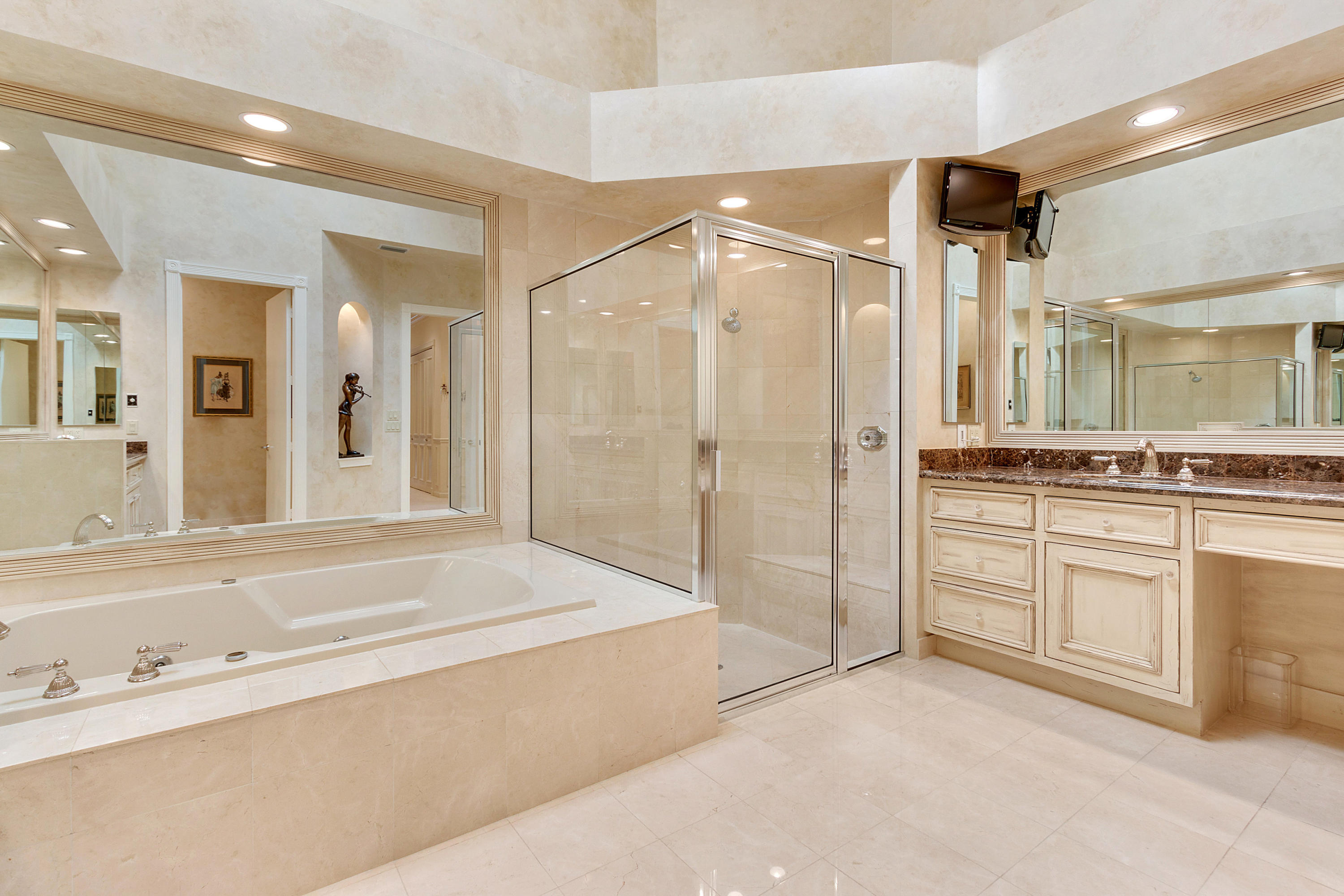 WetBar, BuiltinFeatures, DiningArea, SeparateFormalDiningRoom, EntranceFoyer, EatinKitchen, GardenTubRomanTub, HighCeilings, SplitBedrooms, Skylights, WalkInClosets, Attic, CentralVacuum, Intercom