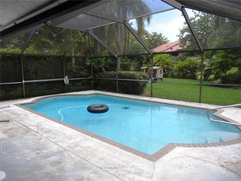 COUNTRY CLUB TYPE PROPERTY... Huge private back yard w/screened swimming pool. This 4 bed 2.5 baths well maintained home sits on over 1/3 acre and has a newer roof, accordion shutters, 2 newer A/C units, newer kitchen appliances, freshly painted, full an d half bath has been remodeled, skylights and oversized rooms for the growing family. Quiet neighborhood, great schools, very low HOA, easy access to shopping and Sawgrass Expwy. This house is a gem and priced for a quick sale, HURRY!!!