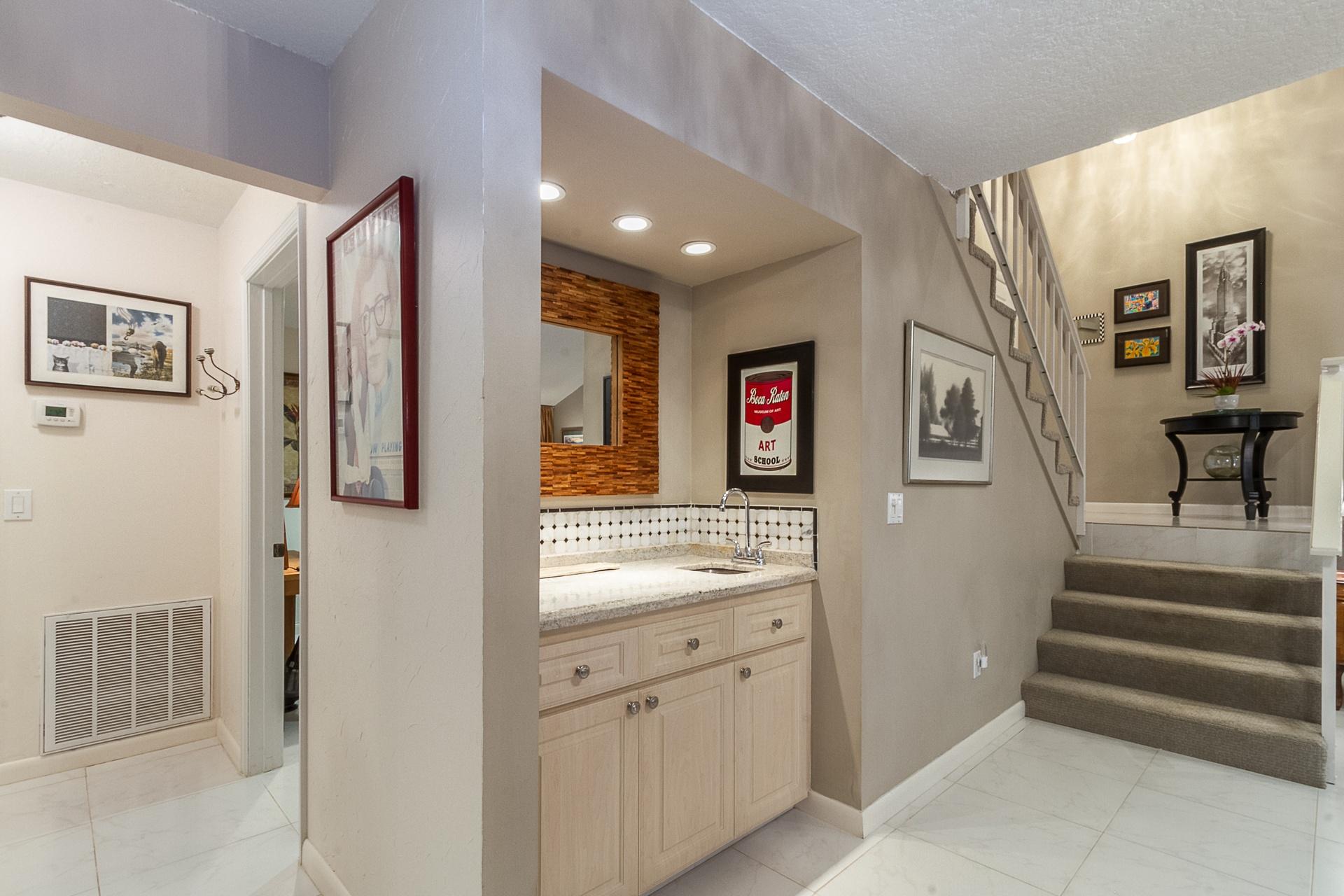 Location!! This Beautiful townhouse is located in a small gated community within walking distance to Town Center Mall, restaurants and shops. Easy access to all major Hwys. A+ schools. Charming home with a huge air-conditioned patio. very private with lush greenery, great for entertaining . One bedroom and full bathroom downstairs. This property is move ready. Exterior just freshly painted by association. Bring your fussiest buyers.