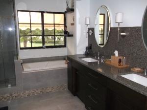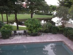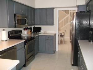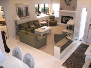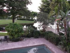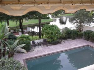 Beautiful updated 4/3 lakefront pool home. Fabulous open floor plan boasts updated kitchen w/wood cabinets, stainless appliances, corian countertops & eat in area. Formal living room & dining room offers soaring ceilings, fireplace, step down bar w/wine cooler opens to outside patio, great for entertaining. Full bedroom bath down, master & two bedrooms up. Master suite offers great lake & pool views, large walk in closet, beautiful updated master bath w/chocolate cabinets, double vanity, soaking tub, separate shower & private commode area. Impact doors & windows, roof replaced in 06. Home is beautifully maintained. 24 hour manned gate, comm pool/spa, walk to tennis, shops, restaurants & more. Close to I95, turnpike,great schools. 3CG. Fee includes guard,cable & front lawn. Exclude W/D.