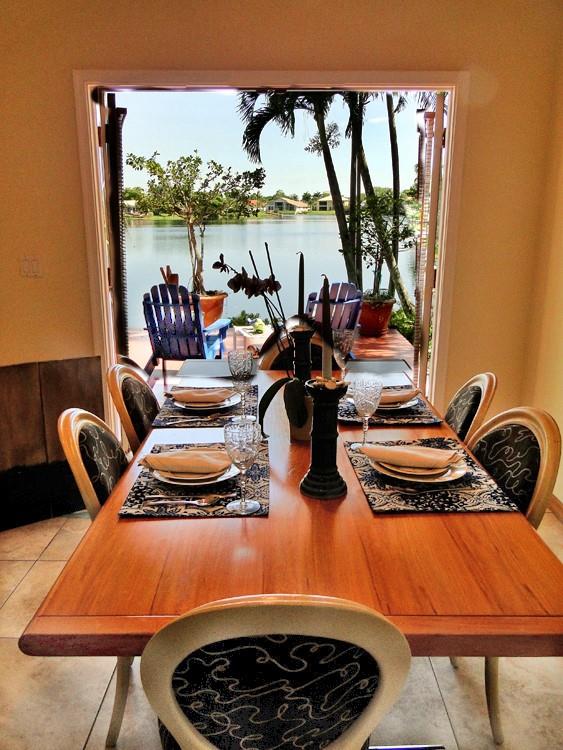 Stunning 1,000 ft. lake views from 6 rooms in unique Rock Creek designer home created by architect F. Snedaker Jr. On quiet, private street. French doors in MBR, BR2 open to 27 ft. balcony. Din. room & Fam. room French doors open to big patio. Major redecorating 2011-13. Cook's kitchen w/ deluxe wood cabinets, quartz counters. Full baths w/granite counters. Woodburning fireplace, 8 paddle fans, skylight, security system. 20" porcelain floor tile. New tile roof in 2013. Deck/dock w/roofed table f