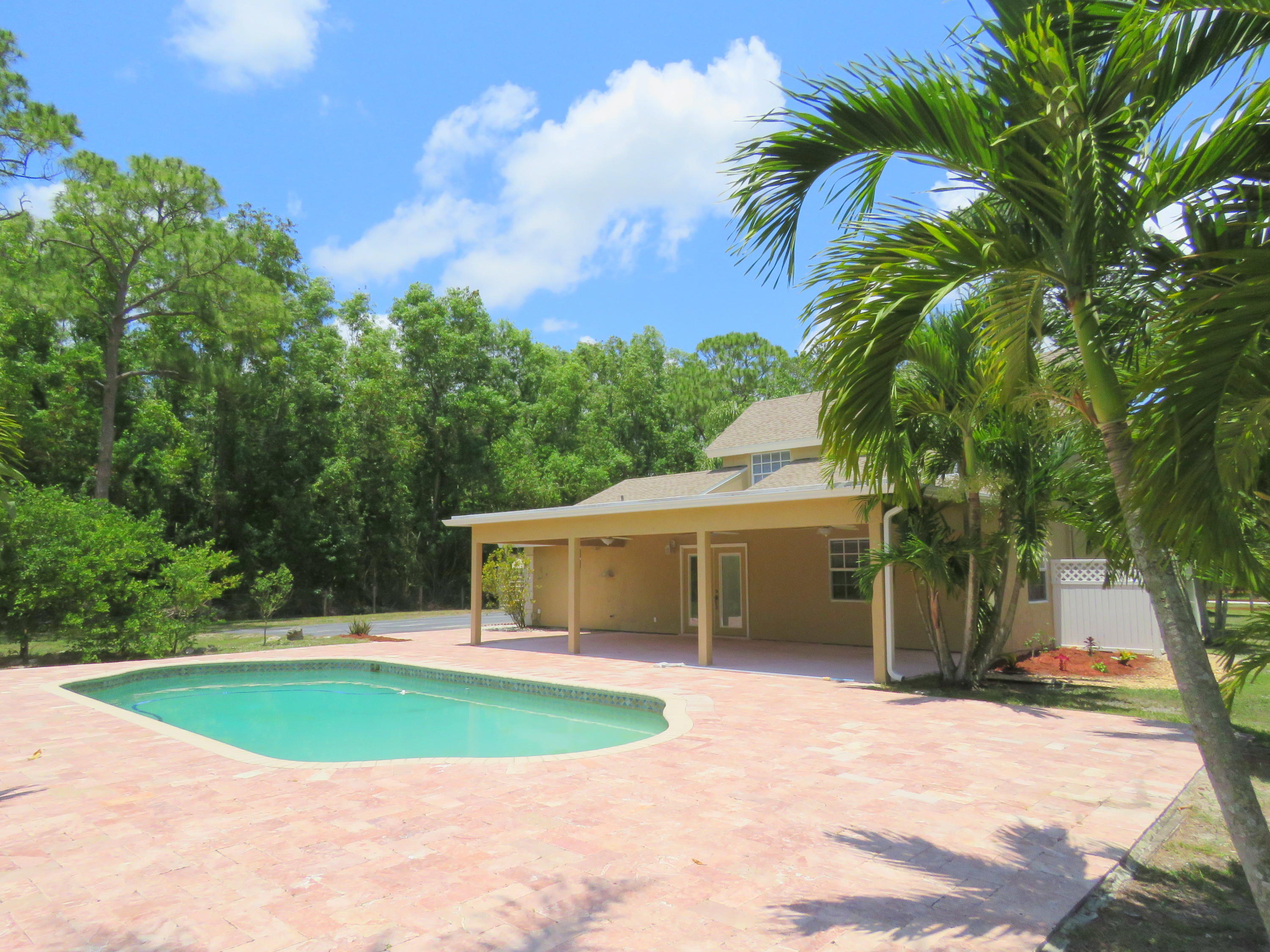 WHAT A LITTLE JEWEL! CONTEMPORARY 2 STORY 3/3 POOL HOME IN A LOVELY AREA OF ROYAL PALM BEACH! YARD IS COMPLETELY FENCED WITH ELECTRIC GATE. BRAND NEW DIMENSIONAL ROOF (2015) HOME IS CHARMING WITH CEDAR CEILING, REAL WOOD-BURNING FIREPLACE, AND GREAT ARCHITECTURAL TOUCHES. THE FLOORING IS REAL WOOD...AUSTRALIAN CYPRESS COVERING ALL OF THE FIRST FLOOR. THE BATHS WERE REMODELED IN 2007. THE KITCHEN IS GRACED WITH LG SAND COUNTERTOPS (SIMILAR TO CORIAN) AND UNDERMOUNT SINK. APPLIANCES ARE MAYTAG. OPEN COVERED PATIO AND CHISELED MARBLE PAVERS SURROUND THE SPARKLING BLUE POOL. POOL HAS A COLOR LIGHT PROGRAM AND OUTSIDE SPEAKERS. YOUR DRIVEWAY IS PAVED AND LEADS TO A DETACHED CARPORT.IN BACK, A BASKETBALL COURT & A 10 X 10 SHED. LIKE FRUIT TREES??MANGO, POM, AVOCAD