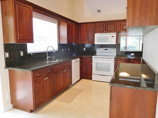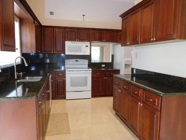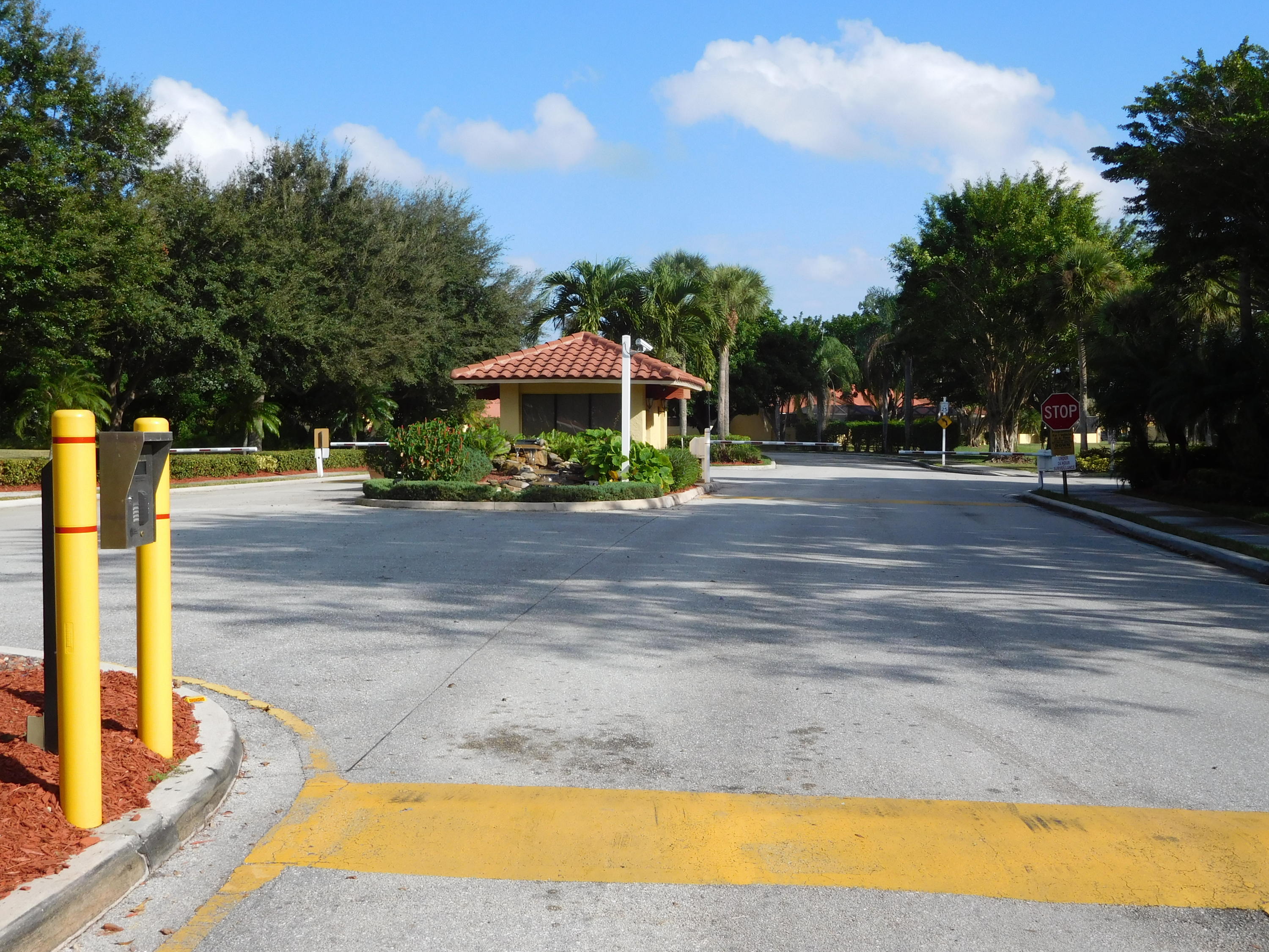 Beautifully updated 3BR/2BA Spanish Mediterranean one story single family Rosewood model home on an extended lot in gated community. Double door entry, vaulted ceilings, hardwood & laminate floors thru-out. Split BR floorplan. Remodeled Kitchen with granite counter tops, refaced cabinets & newer appliances. Remodeled Master BA w/dual granite top vanity, shower stall & frameless door. Remodeled 2nd BA w/tub. Laundry in garage w/newer washer, dryer, sink and cabinets. 2 car garage with hurricane door. Accordion shutters thru-out. Screened covered patio with serene garden views & various fruit trees. 2009 S-Tile Roof. Maintenance fee includes Hotwire High Speed Internet & HDTV. Remodeled clubhouse, 2 heated pools, hot tub, fitness, tennis & basketball courts. Located near the Satellite pool.