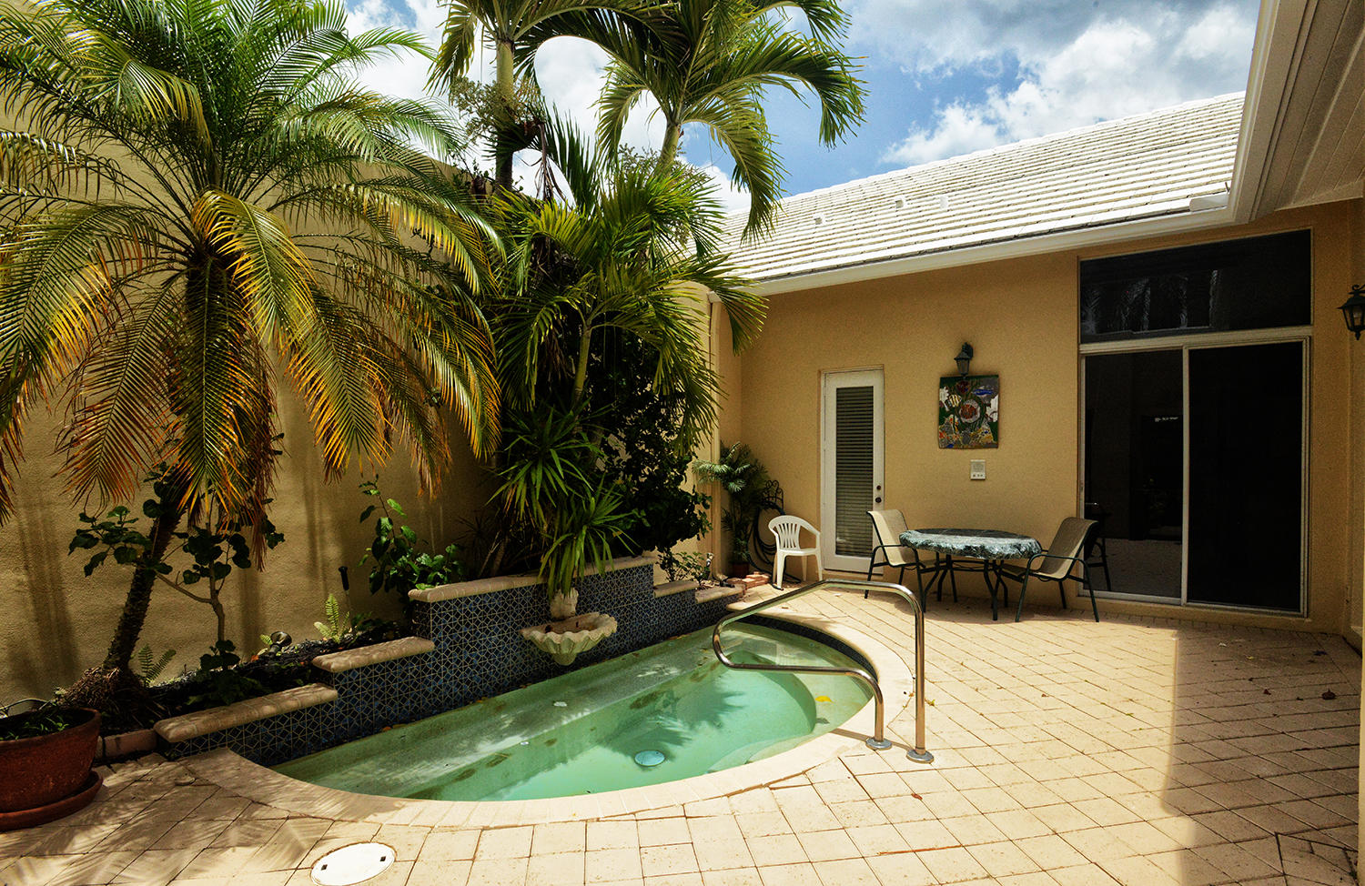 Rarely available Courtyard Home with private pool on Golf Course in Boca Country Club with NO mandatory membership fees! This 3 bedrooms/3 bathroom home (with separate guest house) has remodeled kitchen, high ceilings, great natural lighting, lots of storage, pet friendly, A-rated schools, close to Downtown Boca, Delray and I-95. Offered unfurnished with furniture negotiable. A MUST SEE!