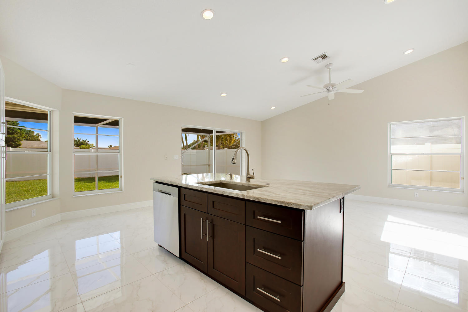 Just remodeled on private, partially fenced lot in all ages, pet friendly neighborhood w/Community Pool & Tennis. New roof. Open kitchen w/white shaker style cabinets, dark wood center island, granite counters, glass tile backsplash, stainless steel appliances + spacious pantry w/pullouts. Porcelain tile that looks like marble in all living areas. Cherry ''wood'' laminate in bedrooms. Master suite w/luxurious bathroom has vaulted ceilings, Double Espresso Vanity w/granite counters, soaking tub + newly tiled shower w/soap niche & seamless enclosure. 2nd bathroom also with Double Espresso Vanity, granite counters & newly tiled tub/shower.NO POPCORN! New faucets,sinks door hardware, 5'' baseboards, fans, lights,blinds, water heater, sod, shrubs, interior & exterior paint. MOVE IN READY!