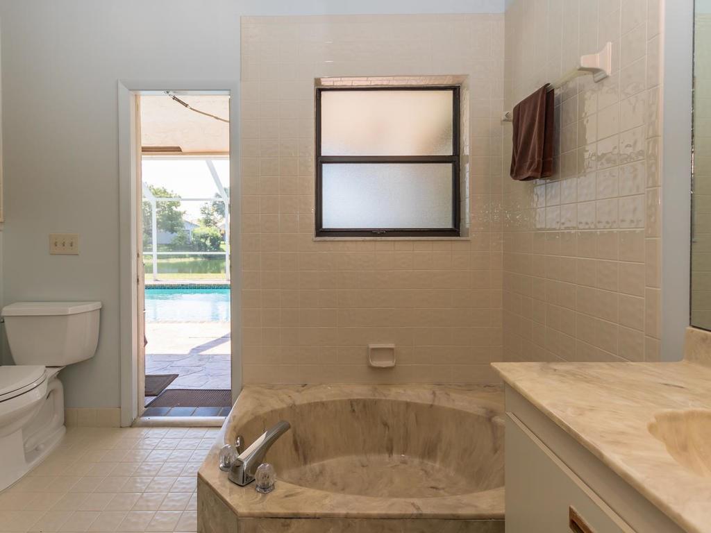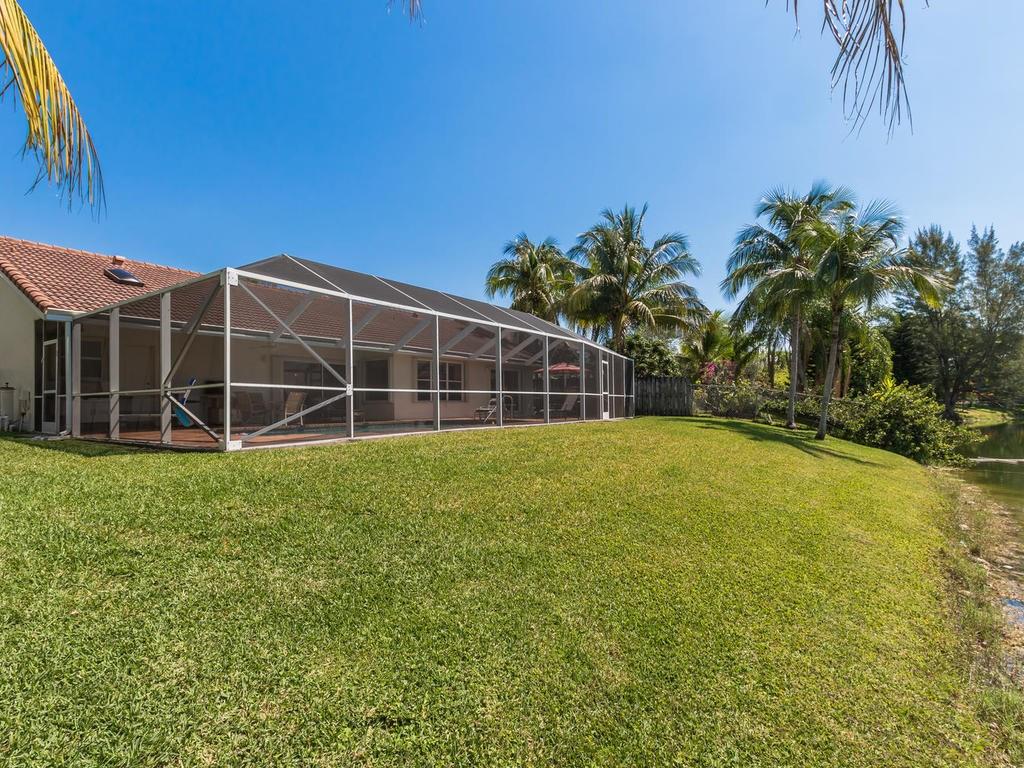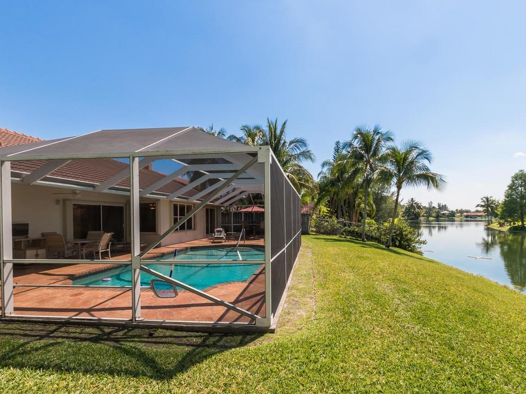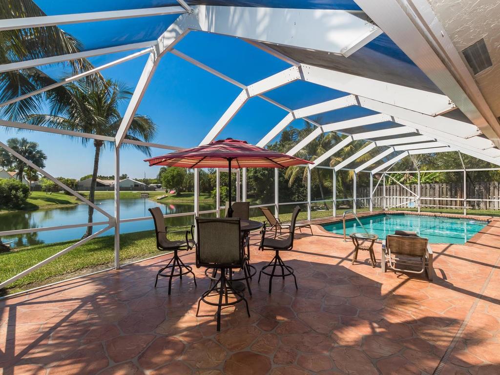 Immaculate original owner Montelana Model. 3 big bedrooms, 2 bathrooms. Open floor plan, walk through front doors and overlooking beautiful lake and screened in pool with aprox 1500 sq. ft. euro-tile pool/patio! Kitchen features quartz countertops and stainless appliances including a convection oven and a Bosch dishwasher. Barrel tile roof, Gutters, accordion hurricane shutters, Concrete driveway ,freshly painted inside and out! "A" Schools!