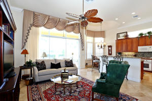In this light bright home you will enjoy a southern exposure with views of lake and golf. This two bedroom plus den home with marble and wood floors are a beautiful neutral touch for your style of furniture and decorating. Recently replace is the air conditioning system, hot water heater & refrigerator. There is a screened patio and just beyond that is the pool and spa. crown molding, built-in closets and much more!
