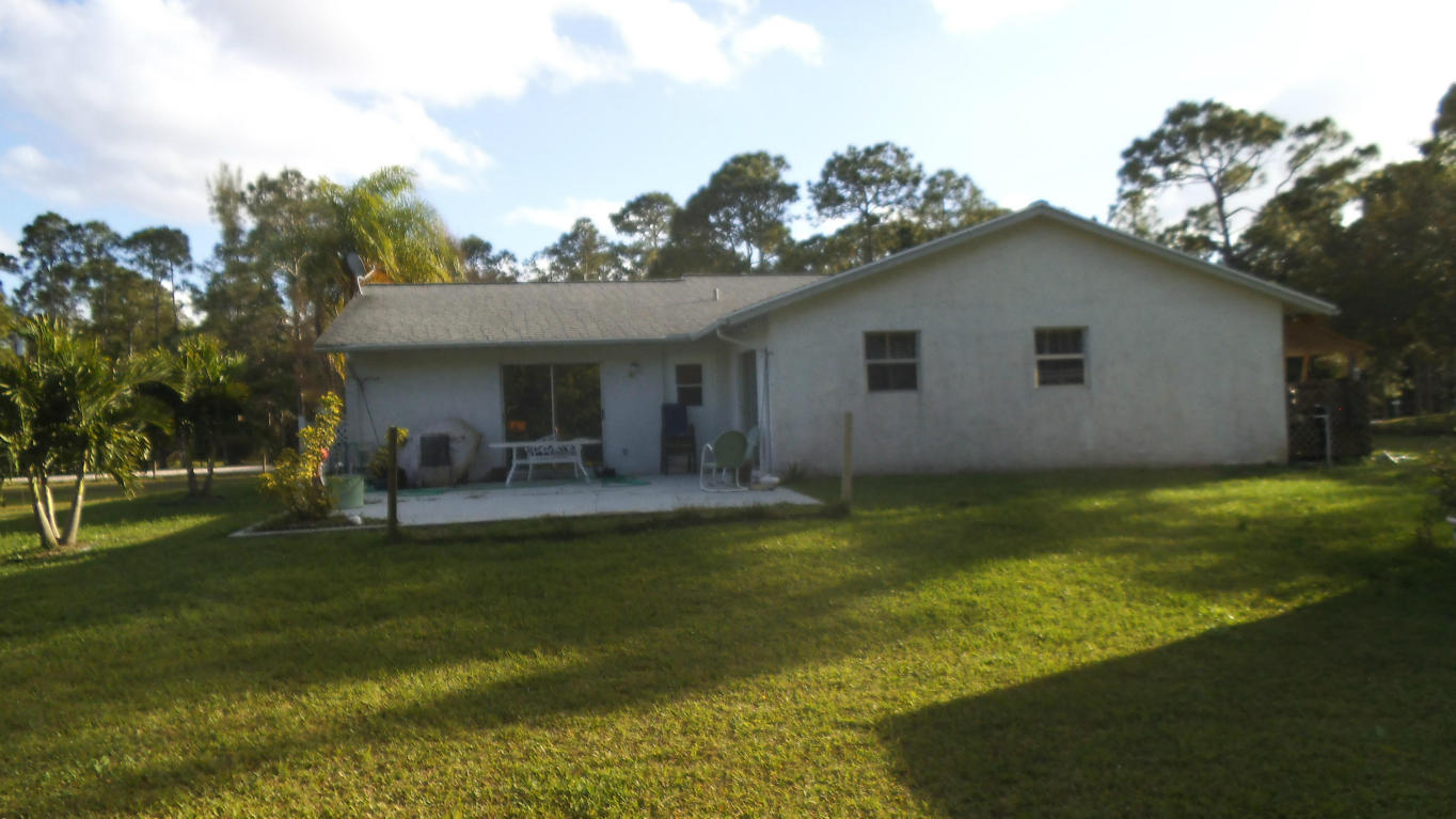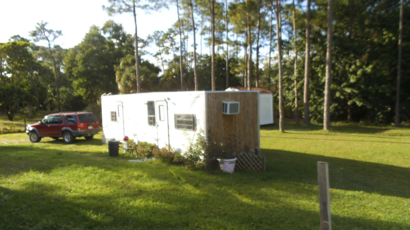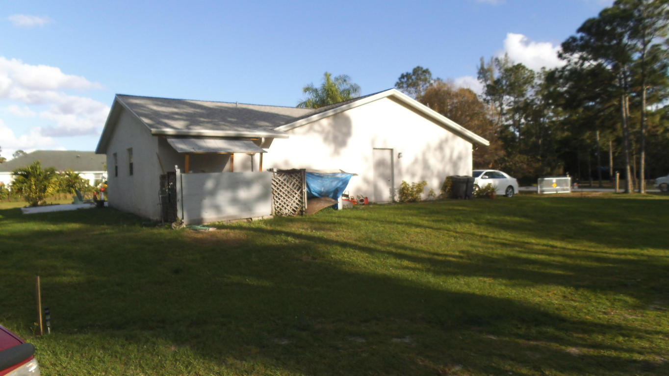 Nice CBS house, close to Royal Palm, but still on an acre plus. There is 18'' tile throughout, ( no carpet) - newer appliances, and a huge inside utility room. This is a unique floor plan. Vaulted ceilings in the living room, high hats throughout, and a breakfast bar in the kitchen. The master has a huge walk in shower, and a cabana bath door to the 20x20 open deck. The lot is fully fenced, with an electric gate, and a 10x10 shed. The trailer on the property currently has a tenant, that will stay or go, depending on the new buyer. The trailer remains with the property, and has it's own seperate power, and septic. Tenant currently paying $700/month.