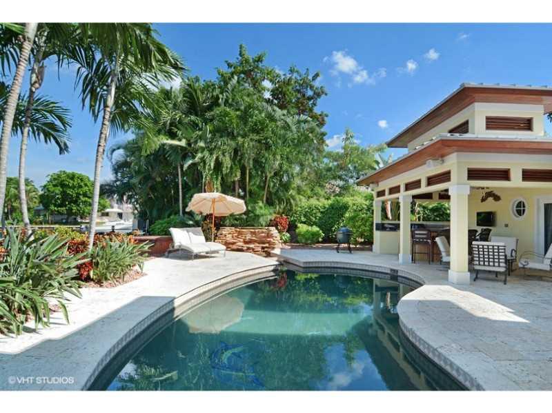 Key West Style Custom Home situated on 105' of waterfront. As you enter the custom etched-glass double doors you are greeted by a 500-gallon Salt Water Aquarium. Beyond that you'll appreciate the gourmet kitchen, tranquil pool & waterfall plus gazebo wi th generous summer kitchen. 4 Bedrooms/4 Bathrooms plus an Office. The 2-Car Garage is carpeted and air conditioned. Enjoy 10-foot ceilings, walk-in closets, custom built-ins and 14K lb. boat lift. Entire waterfront dock overlooks wide turning basin.