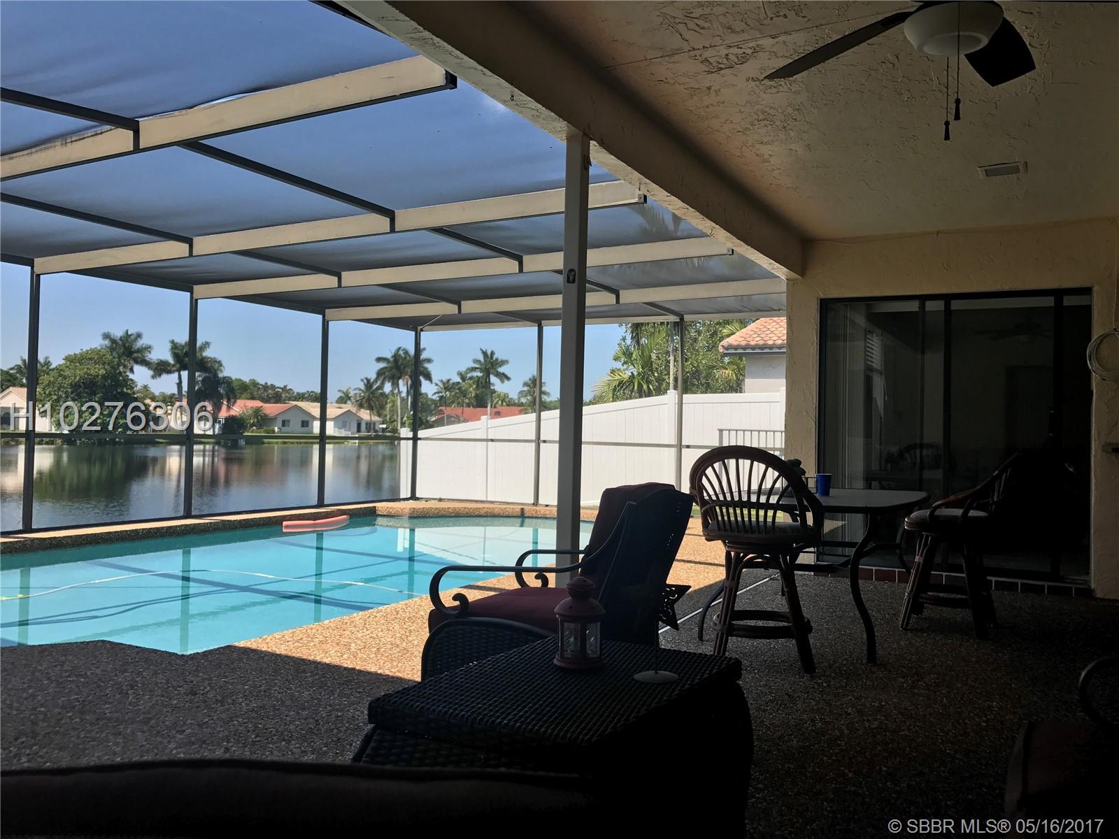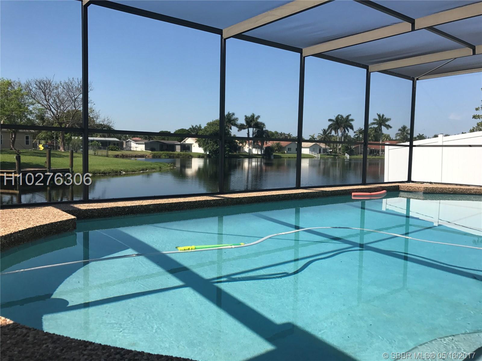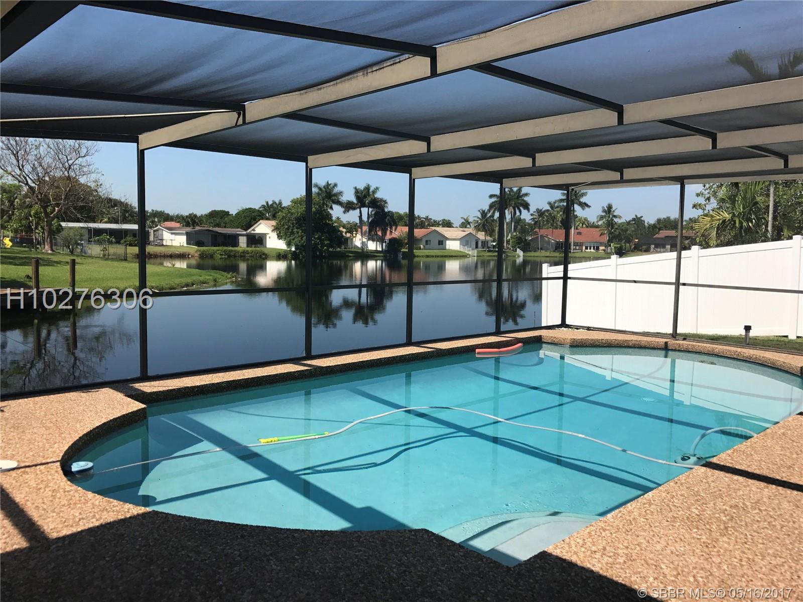 Home in mint condition. 3/2 with 2 Car Garage, pool and lake. Tile flooring in living area, laminated wood flooring in the bedrooms. Tastefully upgraded kitchen, big family room adjacent to kitchen. Sunken living room. Beautiful lake and pool view from dining room and kitchen. Separate laundry room by garage. Big patio area by pool area for entertaining. Don't miss it.