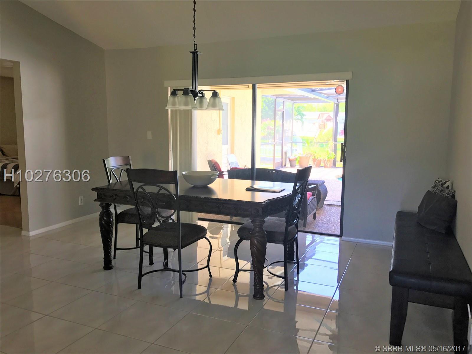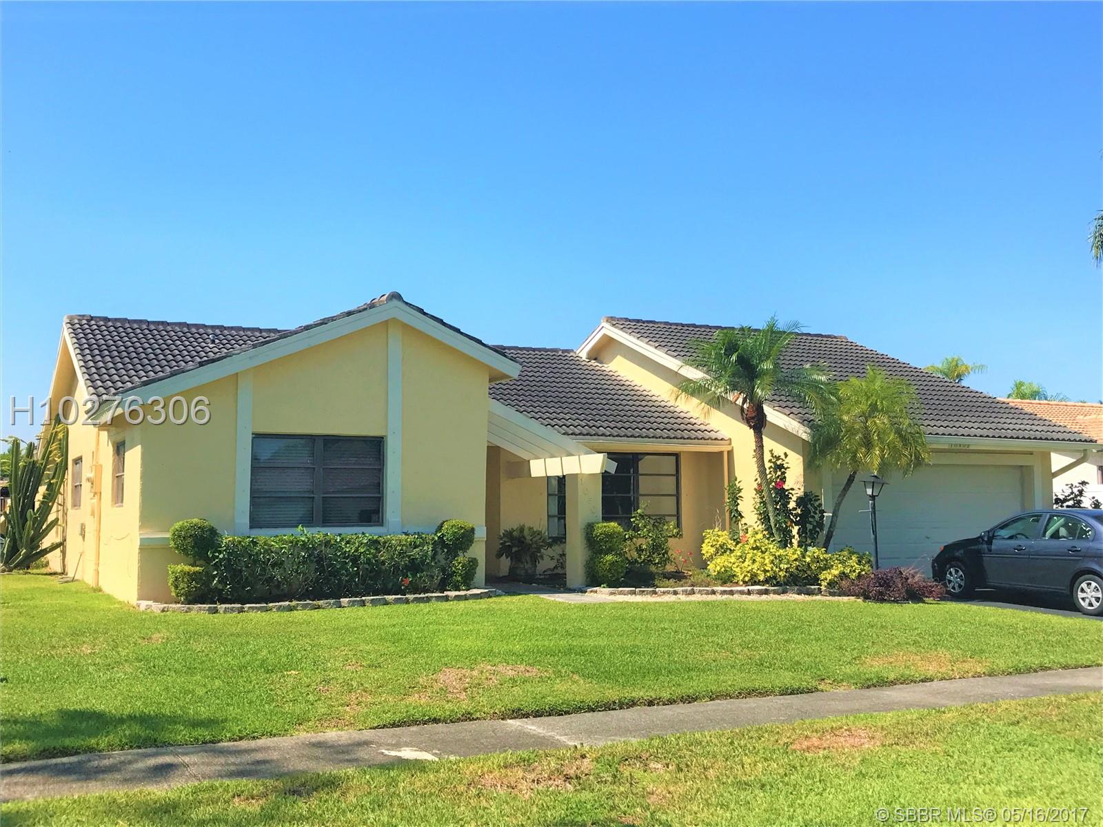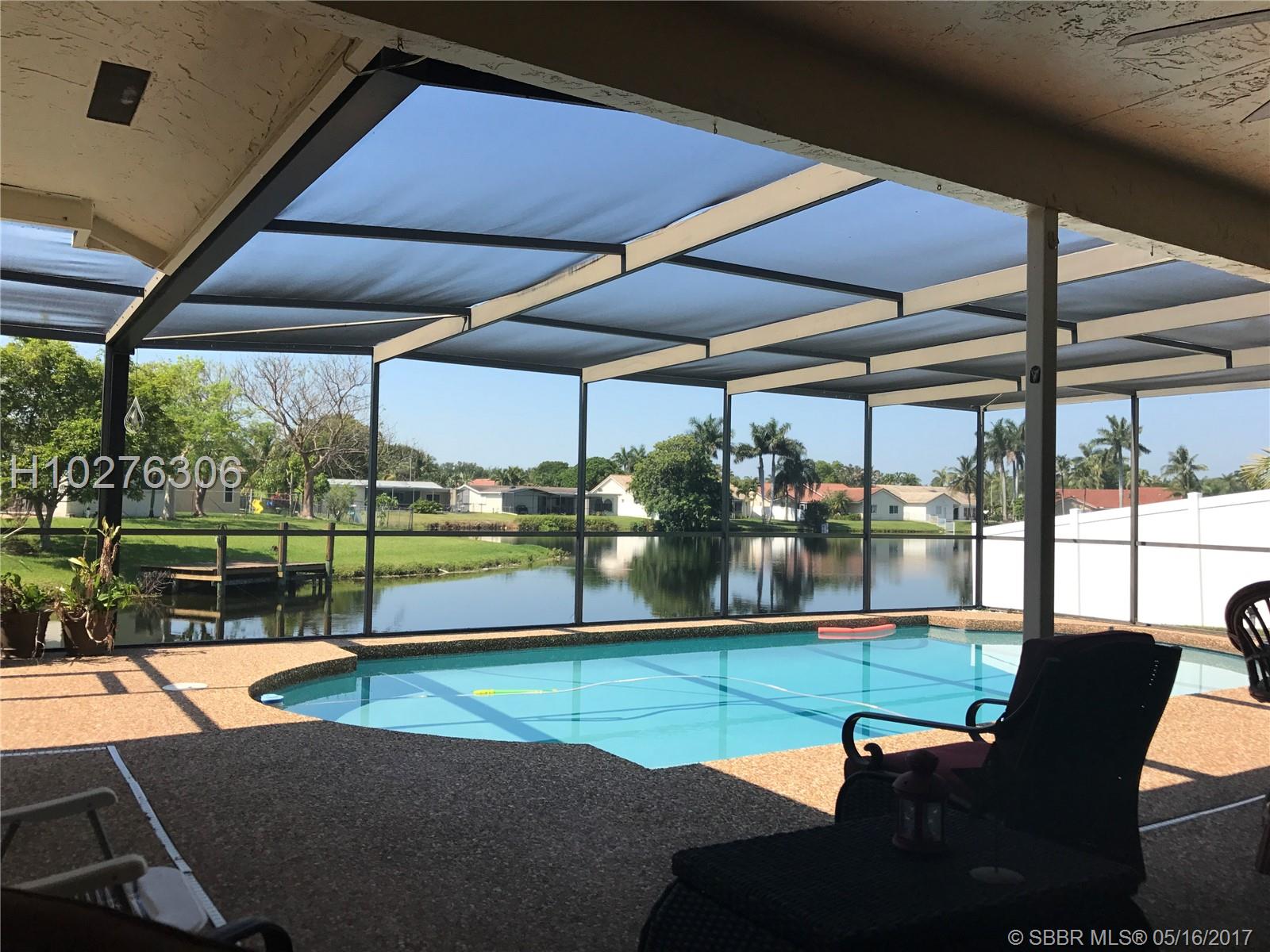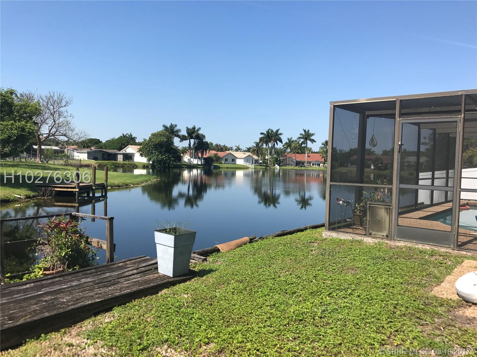 Home in mint condition. 3/2 with 2 Car Garage, pool and lake. Tile flooring in living area, laminated wood flooring in the bedrooms. Tastefully upgraded kitchen, big family room adjacent to kitchen. Sunken living room. Beautiful lake and pool view from dining room and kitchen. Separate laundry room by garage. Big patio area by pool area for entertaining. Don't miss it.