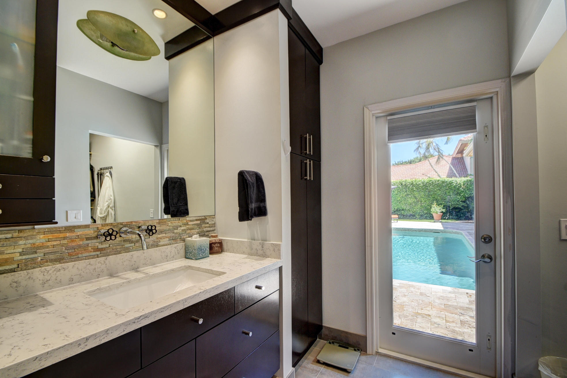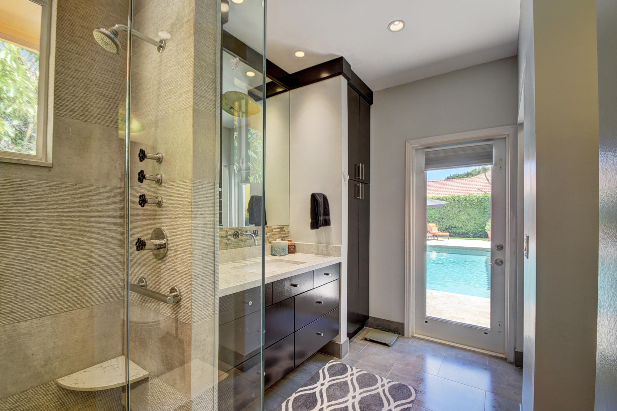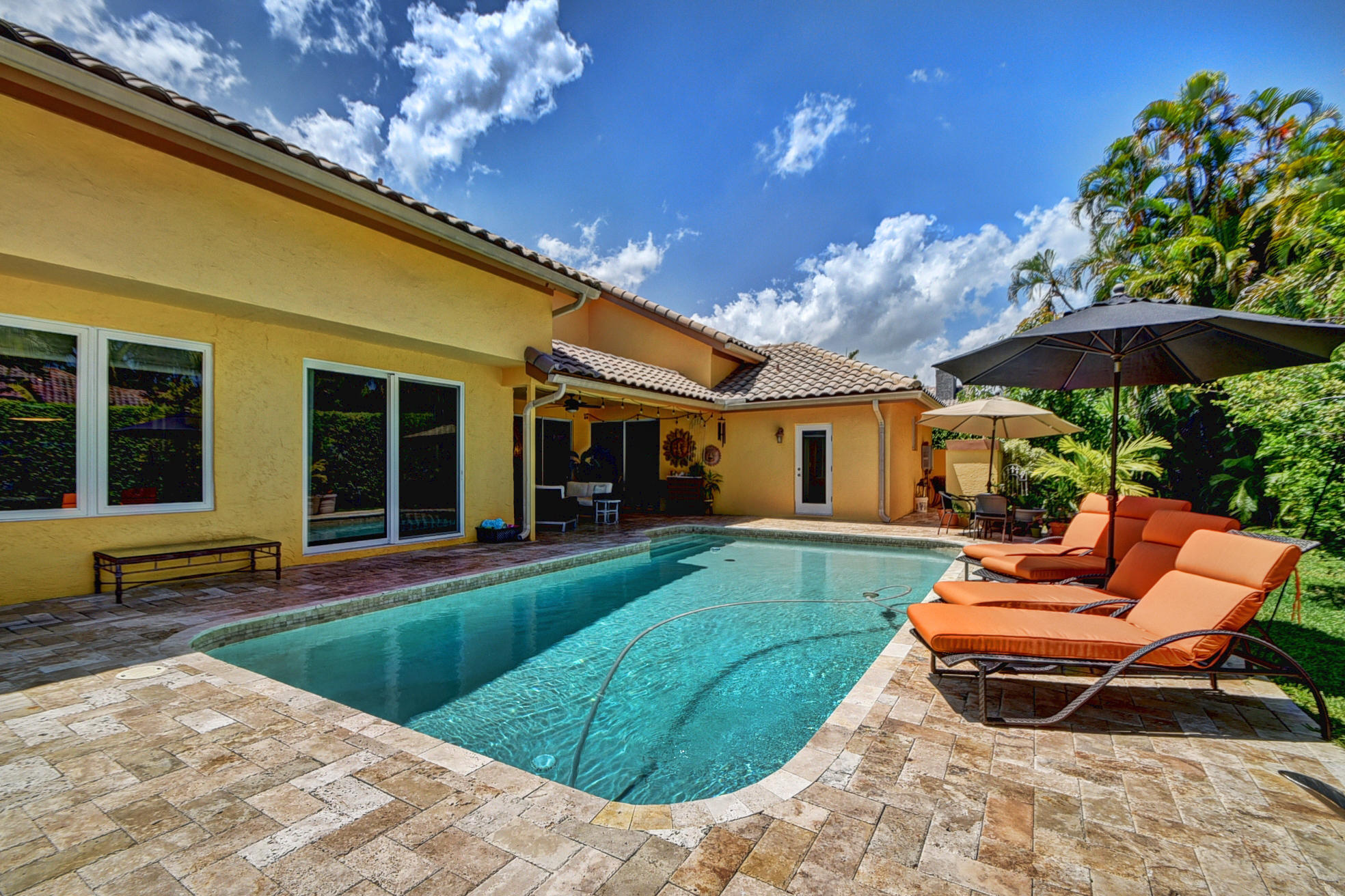 *BACK ON MARKET PRICED TO SELL* The moment you pull up to the marble circular drive and see the contemporary impact glass doors you will know that this is no ordinary home. Located on a private interior lot, the Saturnia floors welcome you to a spacious living room and formal dining room and family room. The huge custom kitchen featuring a professional Wolf gas range, Sub-Zero refrigerator/freezer and Bosch dishwasher is designed for a family who loves to cook and entertain! Behind a unique pivoting door you will find 3 spacious bedrooms and 2 bathrooms as well as the recently remodeled Master Suite. Relax by the pool or play in the yard. A new roof, water heater and A/C's with UV-lights and LED high hats and impact windows have been installed in recent years. Garage for 2 cars + golf car