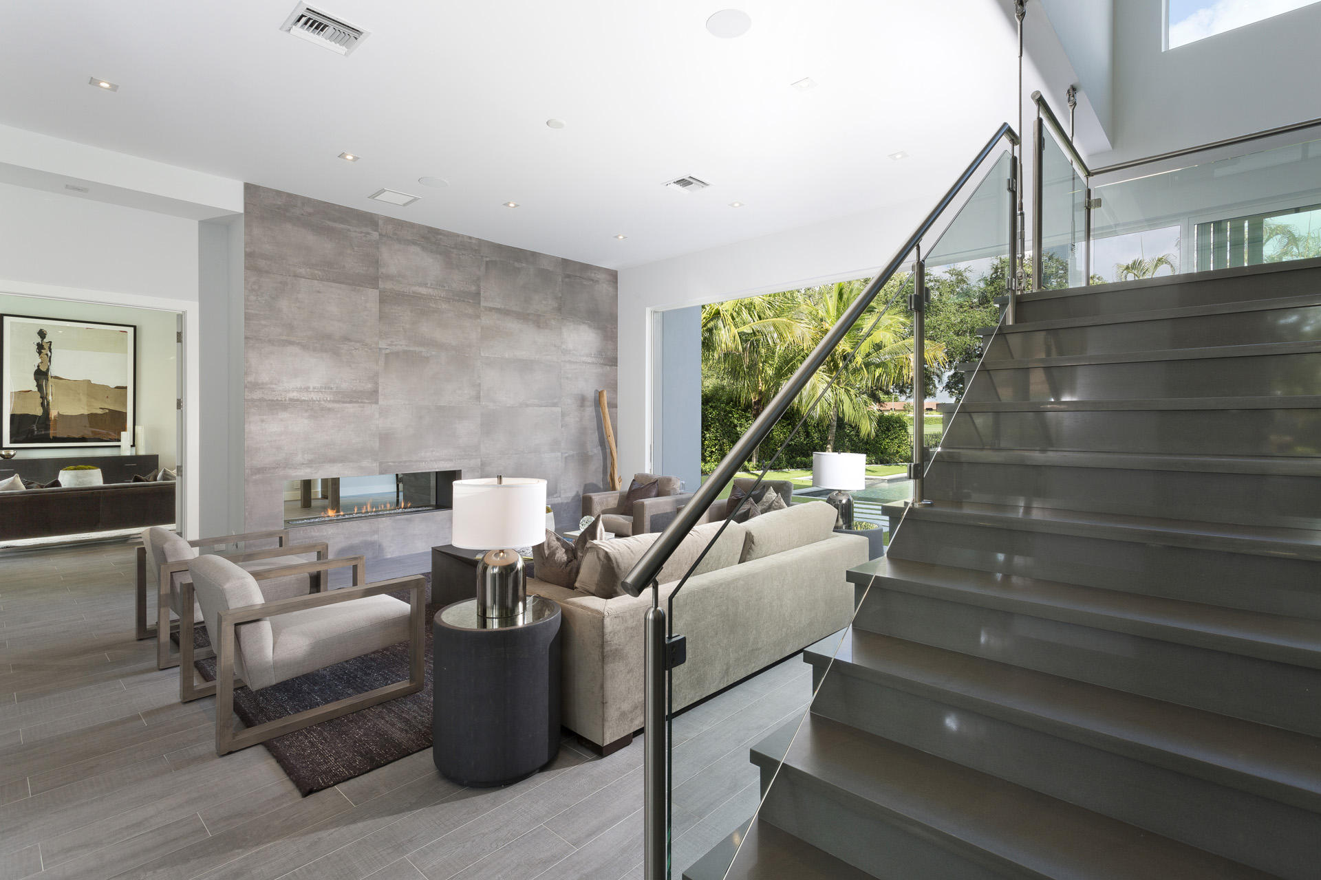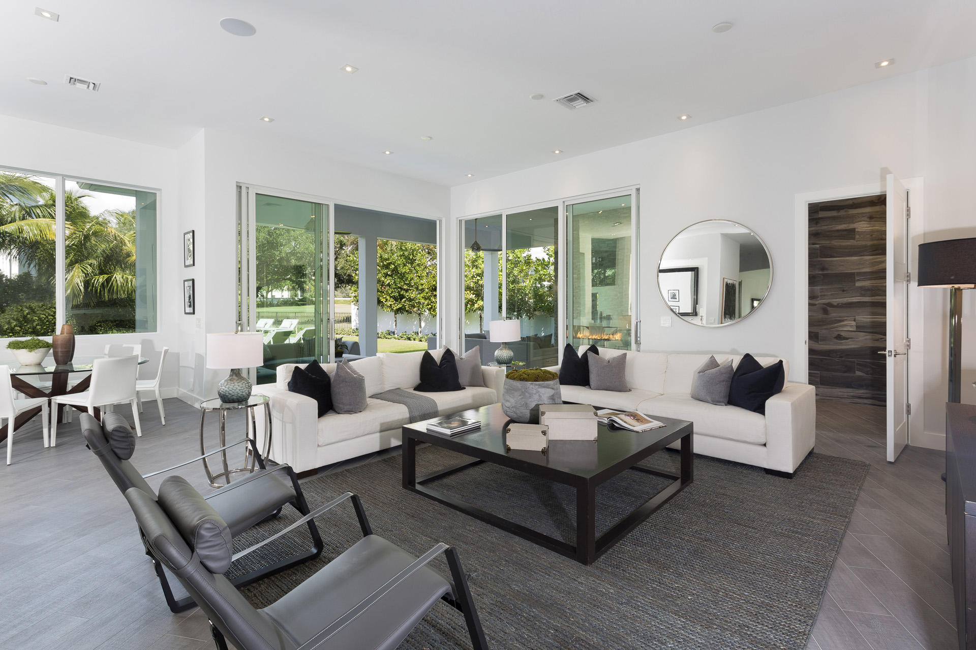Looking west over a lake on the golf course, this stylish estate was just completed in 2017, using fine finishes and luxury features. Stepping stones beckon to the sleek Pebble-Tec pool and spa on the immaculate easy-care grounds with a cooling mist system. Anchored by a stacked stone linear fireplace, the outdoor living room serves alfresco dining from the summer kitchen and grilling station. On the corner property, tropical trees frame the sweeping drive that circles around to the side-entry three-bay garage with additional golf cart storage.Buyer pays title insurance, Florida documentary stamps, and all other closing costs. (for new construction and land use) Taxes on land only.Royal Palm Yacht and Country Club membership is separate and not affiliated with RPIA homeownership