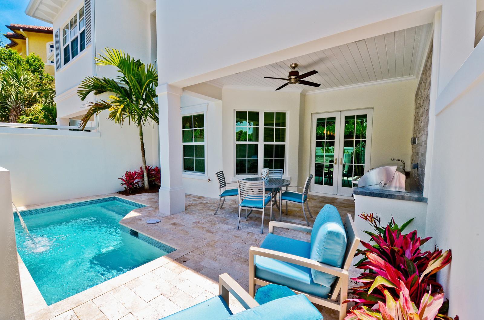 PRE CONSTRUCTION LUXURY TOWNHOME WITH PRIVATE DEEDED BEACH ACCESS TO BE BUILT BY CJM COMMUNITIES. Features include designer kitchen cabinets and a spacious island, built in Thermador luxury appliance package including gas range, double wall oven, built in under-cabinet wine cooler, solid surface Caesarstone countertops, stylish porcelain tile (mudset), beautiful wood floors, 10' ceilings, elevator, frameless heavy glass shower enclosure and freestanding soaker tub in master bath. Exterior features include a private balcony, spacious private patio with summer kitchen and built in BBQ, custom made mahogany front door, impact glass windows, tropical landscaping, and a private heated pool. 10 year home warranty included with purchase. Buyer to pay doc stamps on the deed and title insurance.