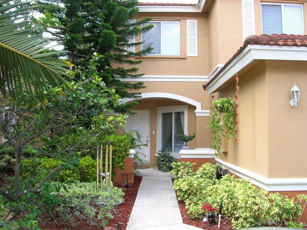 Rare opportunity to own an end unit with oversized lot! Tinted windows on 3 sides provide breezes & serene views. Beautiful CBS 3 bedroom + loft/4th or ofc/2.5 bath townhouse with garage located in 24 hour manned, gated & secure WPB neighborhood. Oversized L shaped screened porch with 12x10 dining/entertainment area! Granite kitchen counter & backsplash. New (2016) appliances, 2013 A/C. Maple wood floors up, lrg tile on diagonal down. Indoor utility room, hurricane shutters. Buyer to receive 13-month Diamond HWA home warranty. Amenities incl large gym, Olympic sized heated pool, spa, clubhouse, tennis, playground. Kids walk/bike to elementary & middle schools. Up to 3 lrg pets allowed! Abundant guest parking. Perfect for seasonal or year round. Minutes to FL Turnpike, I-95, schools & mall.