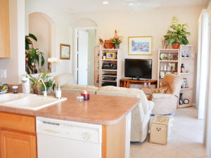 PRICE JUST REDUCED $10,000!! Move In Condition! Beautiful Lakefront 3/2/2 with Lanai, Breakfast nook (with plantation shutters looking out over water), Wood cabinets, Tray ceilings, lots of architectural interest. Master has 2 walk in closets, 2 vanities/sinks, separate shower and roman tub. 3rd bedroom currently used as a den/office, can easily be converted back to 3rd bedroom. Culdesac pie lot with HUGE YARD. MUST SEE! This can be fenced in for pets/kids to play in. Features many fruit trees currently (lime, mango, more). HOA has community pool, fitness center, pool tables, 6 tennis courts, more+, and is less than 100 yards from property. Walk to pool in 60 seconds! Original, non smoking owner has taken care of this home with tremendous pride! Could be a model home!