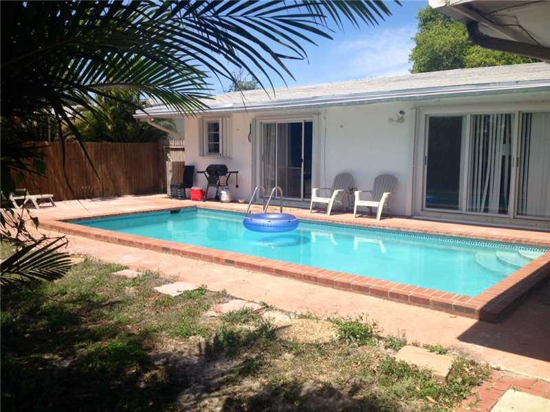 Spotless pool home in HOT Riverland area! From the moment you enter you are greeted to a large open family room with views out to the sparkling pool and patio. Amazing restored terrazzo floors and tile throughout. Master bedroom features sliding doors to the pool and cabana bath door off the master bath. Plenty of windows provide tons of natural light. Large eat in Kitchen. Full size laundry area inside. Enjoy entertaining on the expansive patio area with oversized pool. Great shed as well for storage.