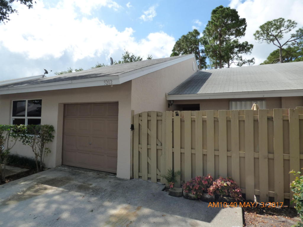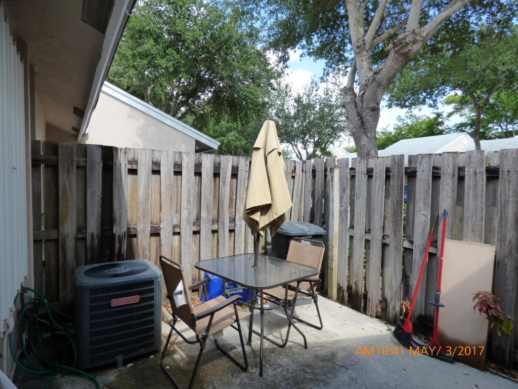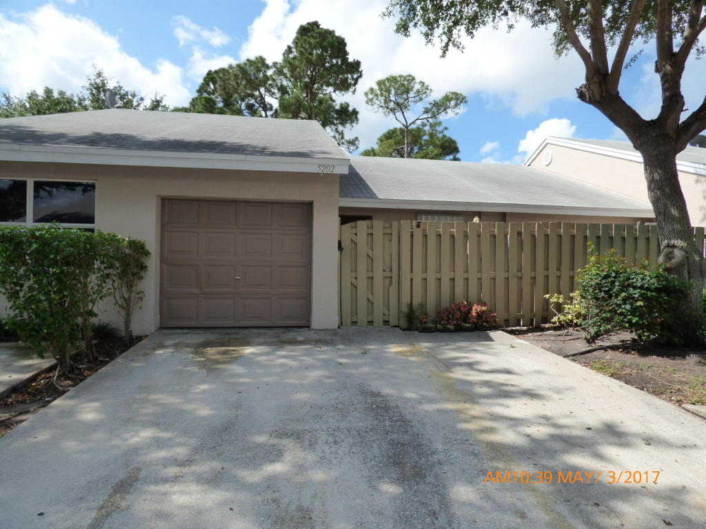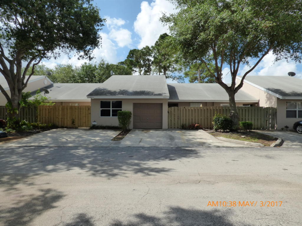 This very nice villa/townhouse has an excellent floorplan and great space. It has two bedrooms and two full baths. When you enter the home there is a welcoming foyer that adds separation and privacy to the bedrooms and family space. The galley kitchen opens to the dining and living areas. The flooring is all tile and laminate. No carpet! The fenced front and rear patios add useful private space that really make the home flexible. In addition to the garage there's also room for two cars in the private driveway. The home has accordion hurricane shutters on the sliding patio door and windows. The HOA fee includes insurance on the building and roof maintenance. This may be the perfect home or a great rental.