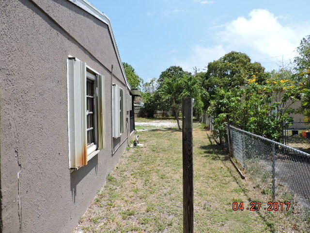 Nice single family home with stack bedrooms, updated kitchen and tile floors throughout. Back family room added with 2nd bathroom (could be third bedroom) and utility room inside. Central a/c. Handyman property - large pie shaped lot with great East of I-95 location.