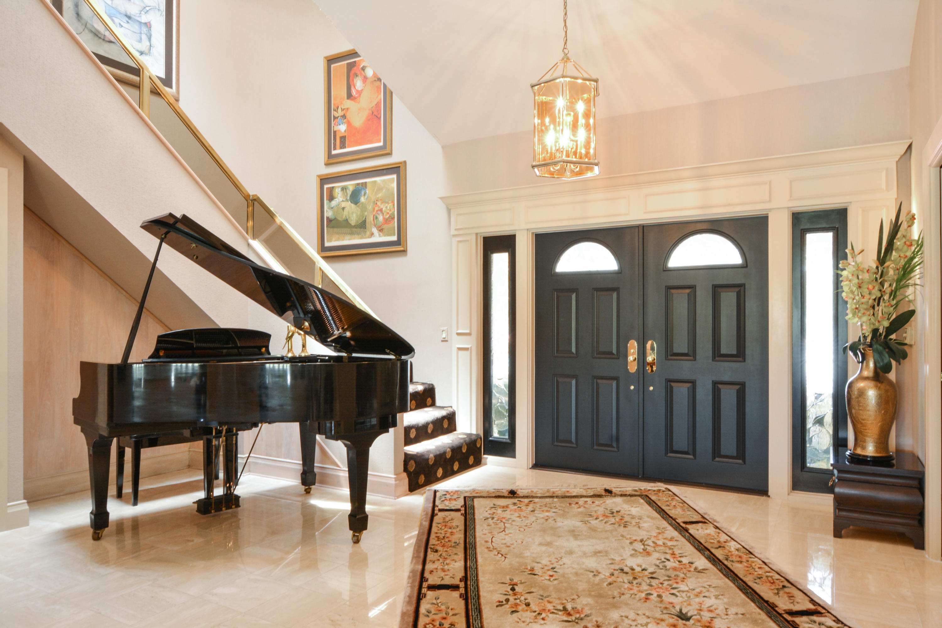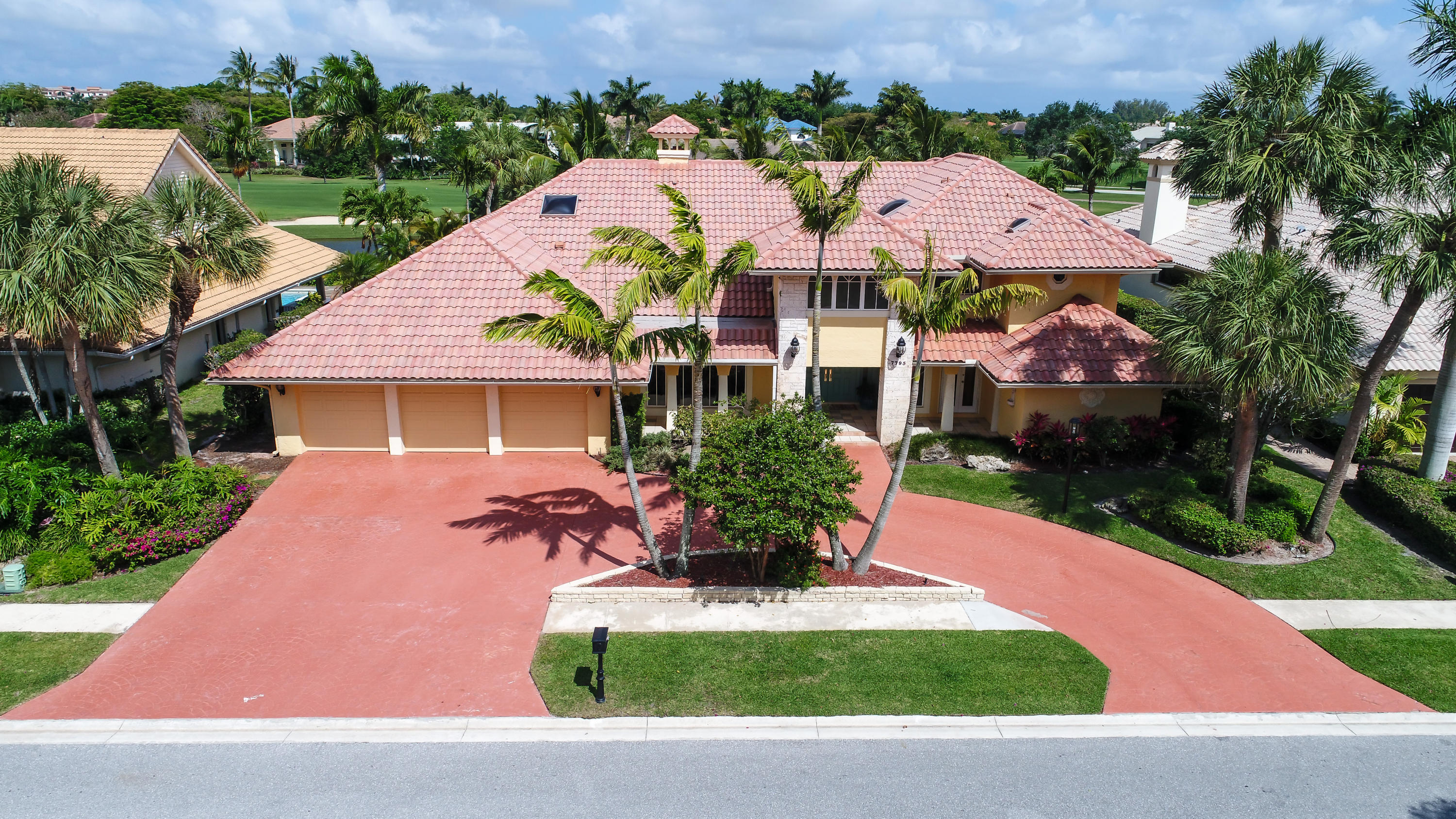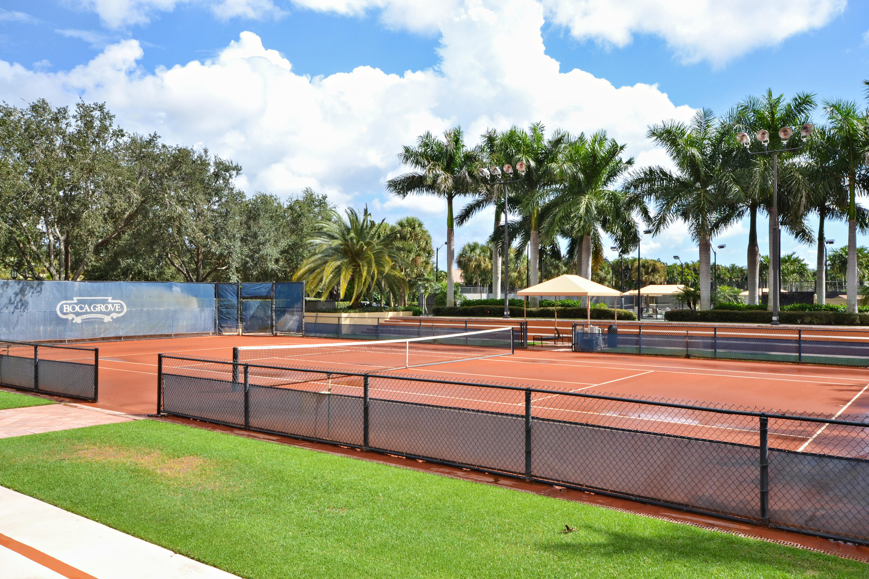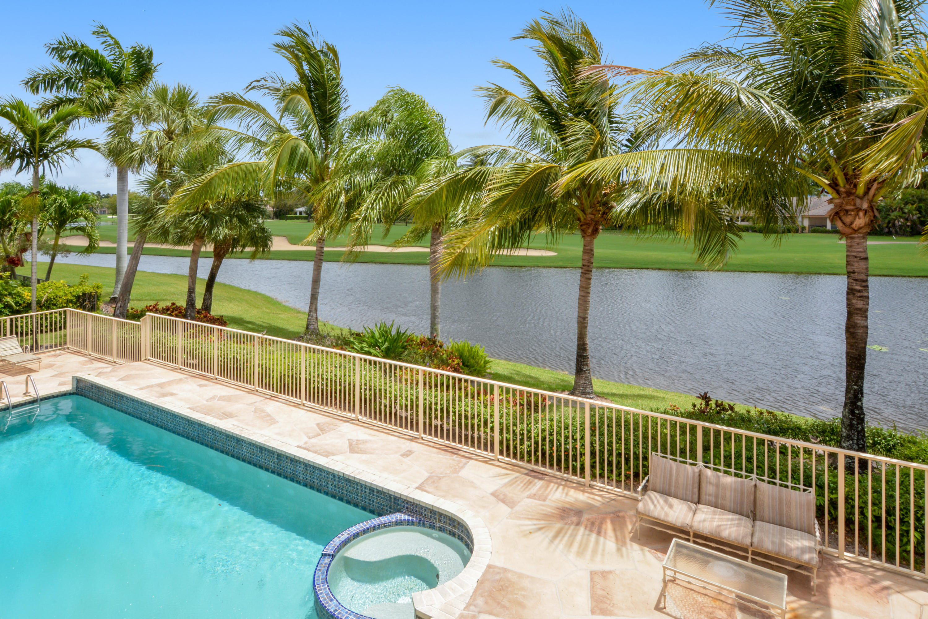 This lovely estate shines on its own and is complemented with golf course and lake views to be seen from indoors or poolside. Features beautiful marble and hard wood floors and rare floor to ceiling coral fireplace. Chef's kitchen with ample space for breakfast table neighboring separate formal dining room. Spectacular second story Master Suite with lovely balcony, overlooking the pool area, lake and golf course. This is one of the best lots in Boca Grove. All 3 ensuite bedrooms on main floor provide plenty of privacy for family or guests. Additionally, most of the house has impact glass and accordion shutters are installed for custom windows. Boca Grove is a centrally located mandatory equity membership country club ideal for those seeking ''lifestyle'' with social events, golf, tenni