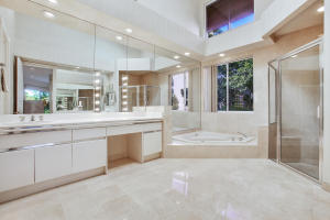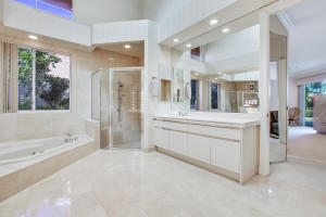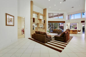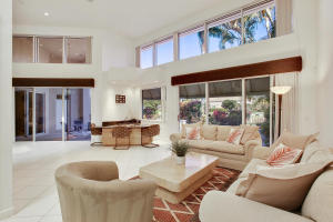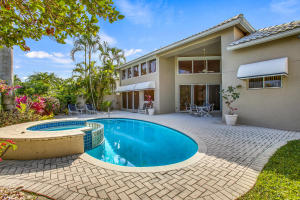 Upon entering this one level home, an impressive two-story great room is revealed. The open and bright floor plan allows for a dramatic impression. The home presides over beautiful tropical grounds with a picturesque long lake view. The backyard is flanked with lush landscaping to afford complete privacy and the loggia is perfect for outdoor dining. The master bedroom retreat offers both his & her separate bathrooms and includes two sizable walk-in closets. Strategically separated from the master bedroom are two additional oversized bedrooms, one that is en-suite with its own private bathroom. This property provides an excellent opportunity to live in the beautiful surroundings of The Polo Club County Club of Boca Raton.