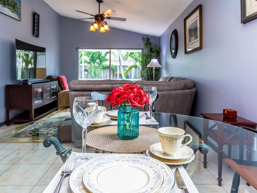 BEAUTIFULLY DECORATED UPDATED 3/2/2 HOME IN THE 5 STAR RESORT-LIKE COMMUNITY OF PEMBROKE ISLES! NEUTRAL TILE, BERBER CARPET & LAMINATE WOOD FLOORING; ALL LIGHT FIXTURES & CEILING FANS REPLACED; UPDATED KITCHEN WITH GRANITE COUNTERS & STONE TILE BACK-SPLASH, STAINLESS STEEL APPLIANCES; UPDATED MASTER BATHROOM AND SECOND BATHROOM; COVERED & SCREENED PATIO OVERLOOKING VERY PRIVATE TROPICAL "ISLAND OASIS"; ACCORDION SHUTTERS; MINT CONDITION. ALARM, CABLE, POOL, GYM, BEACH, ETC. INCLUDED IN MONTHLY FEE.