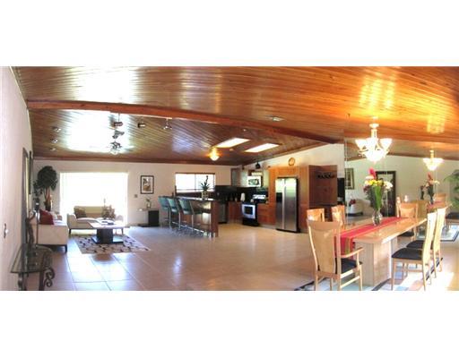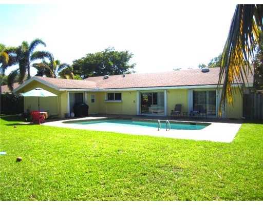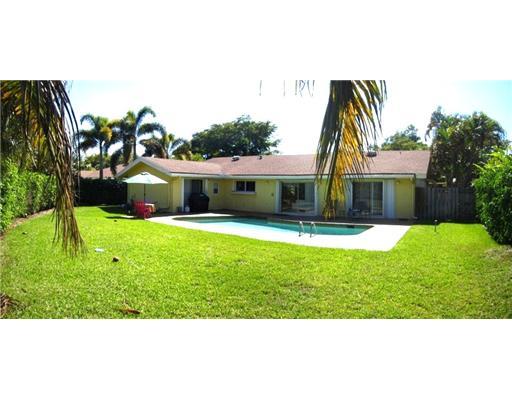 Beautiful Estate neighborhood - Be comfortable among our BIG, estate neighbors! Warm, tongue-in grove, wood ceiling for large, open living areas. Remodeled kitchen. Updated baths. Good-sized bedrooms and a HUGE yard, surrounded by lush foliage, & an ope n pool. Paver drive & walkway. Home freshly painted and tiled cleaned. Accordion, hurricane shutters. Gated community. Nearby Jacaranda country club. Welcome Home!