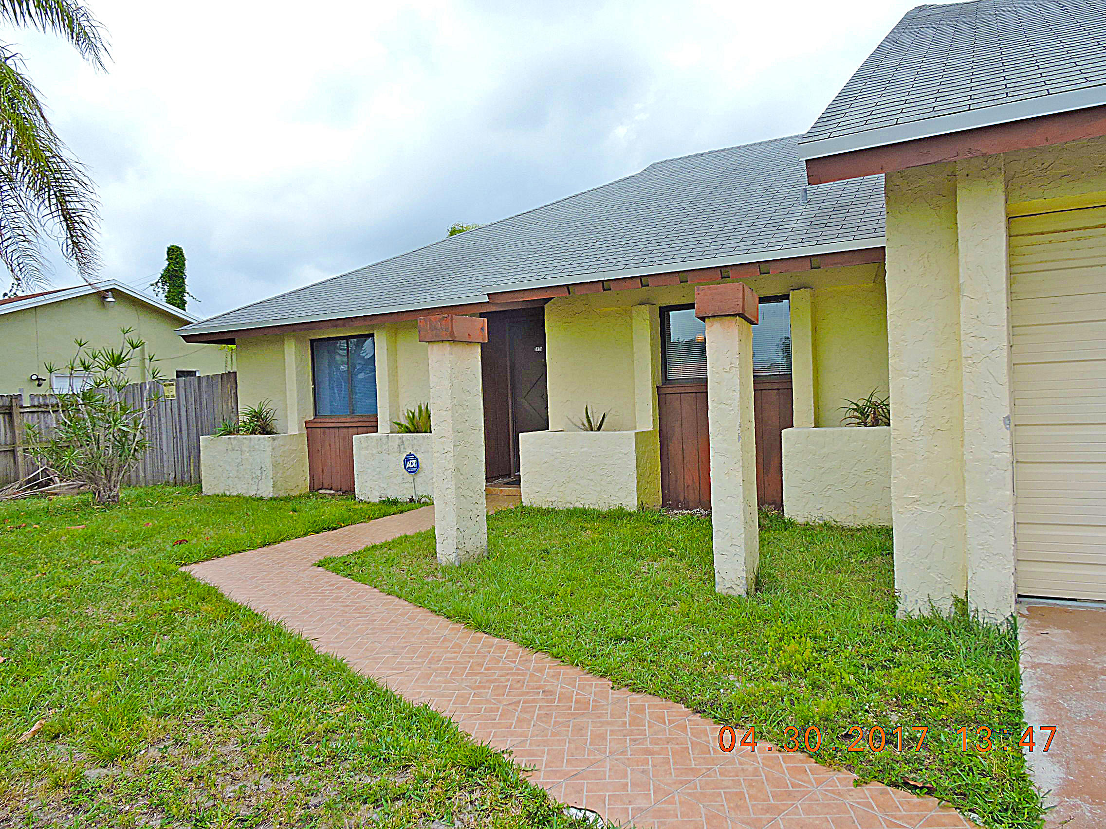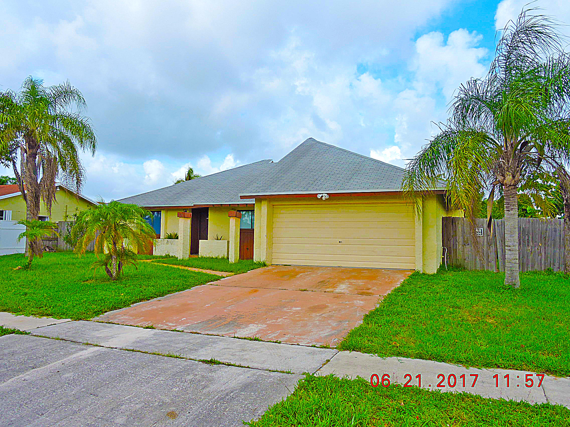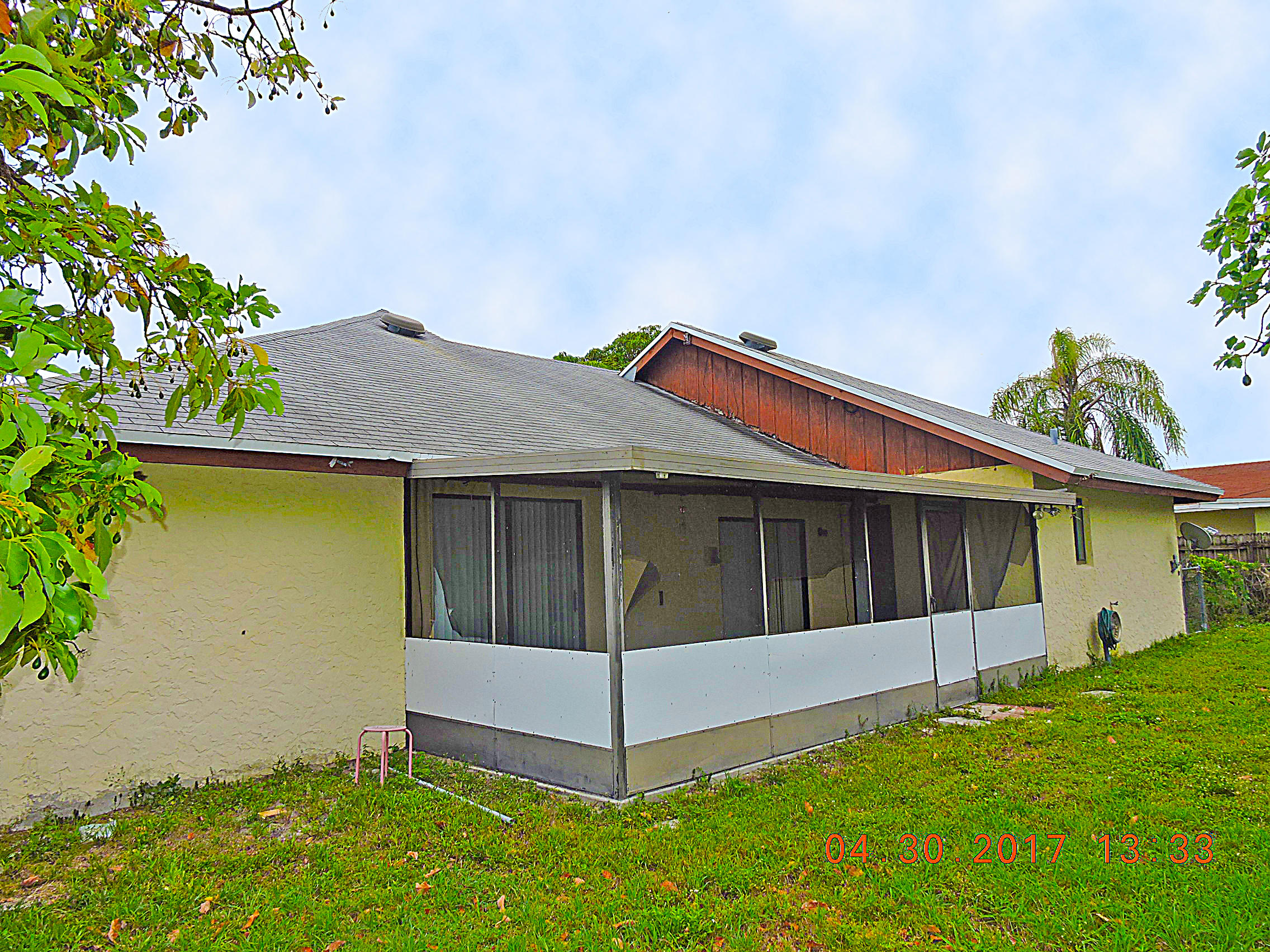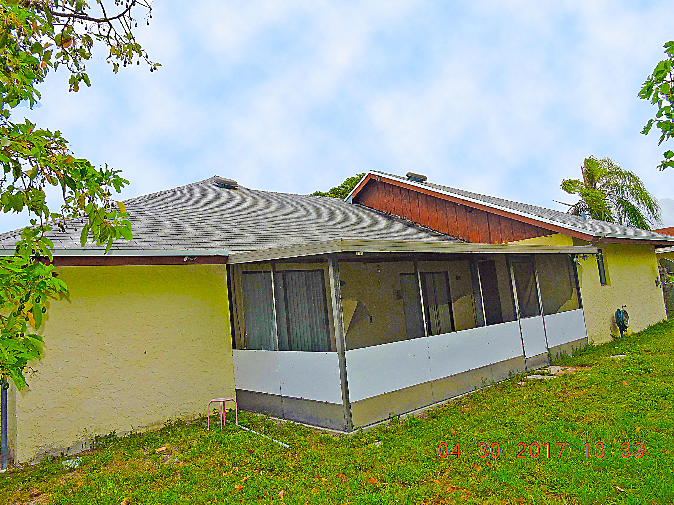 This split floor plan 3 bed 2 bath home has a 2 car garage and screened patio area with plenty of yard space. Property needs work but has great potential for a do it yourself type of family or a handyman. There is also a bonus room as the formal dining room has been converted into a fourth bedroom. Guest bathroom leads into the patio area which is great for when you entertain. The kitchen has an eat in area and looks out over the living room and the living room has two sliding doors that lead out to the screened patio area. Plenty of parking and front yard space as well. This home is in need of some major TLC, but once completed will be a great value