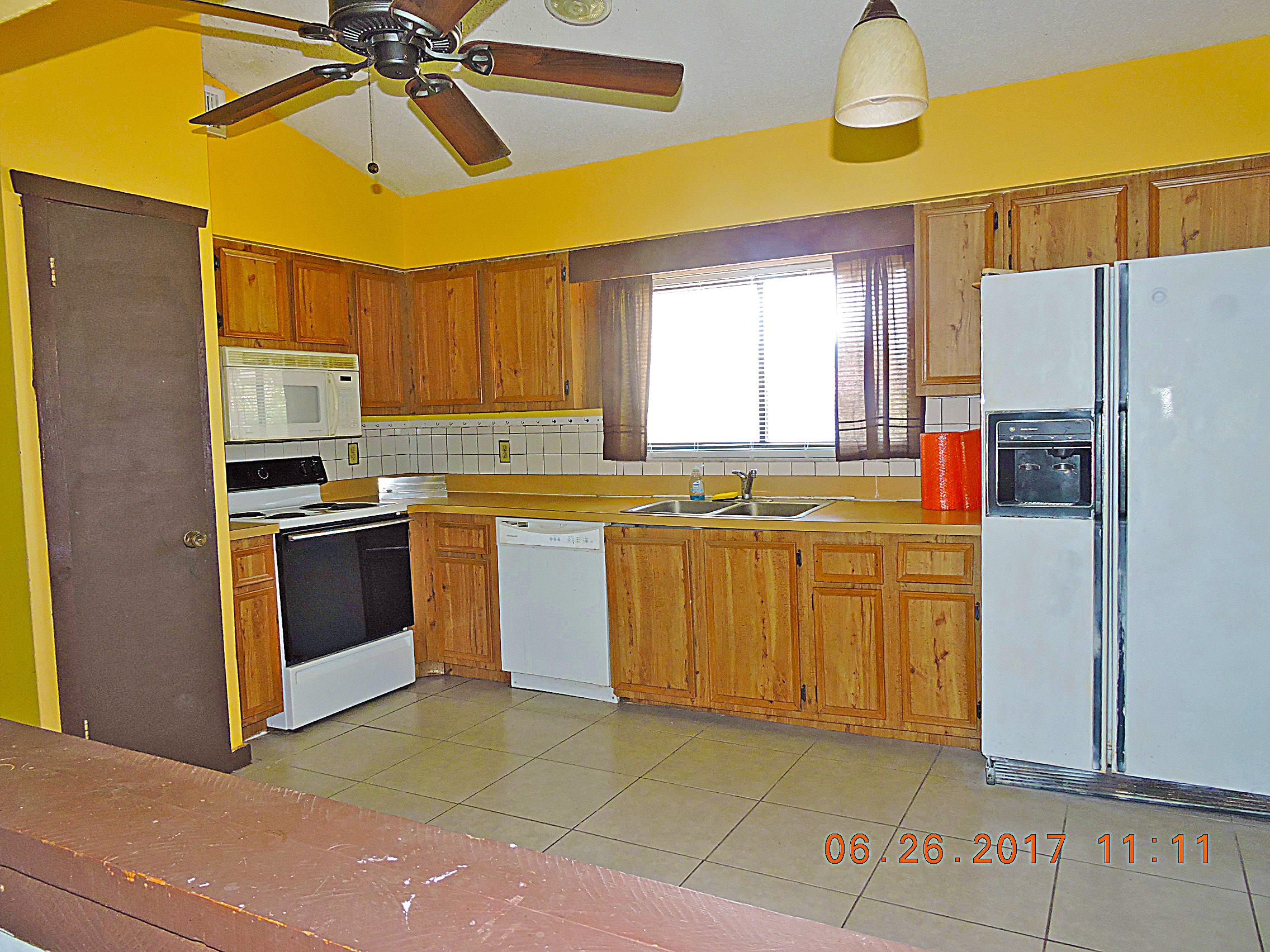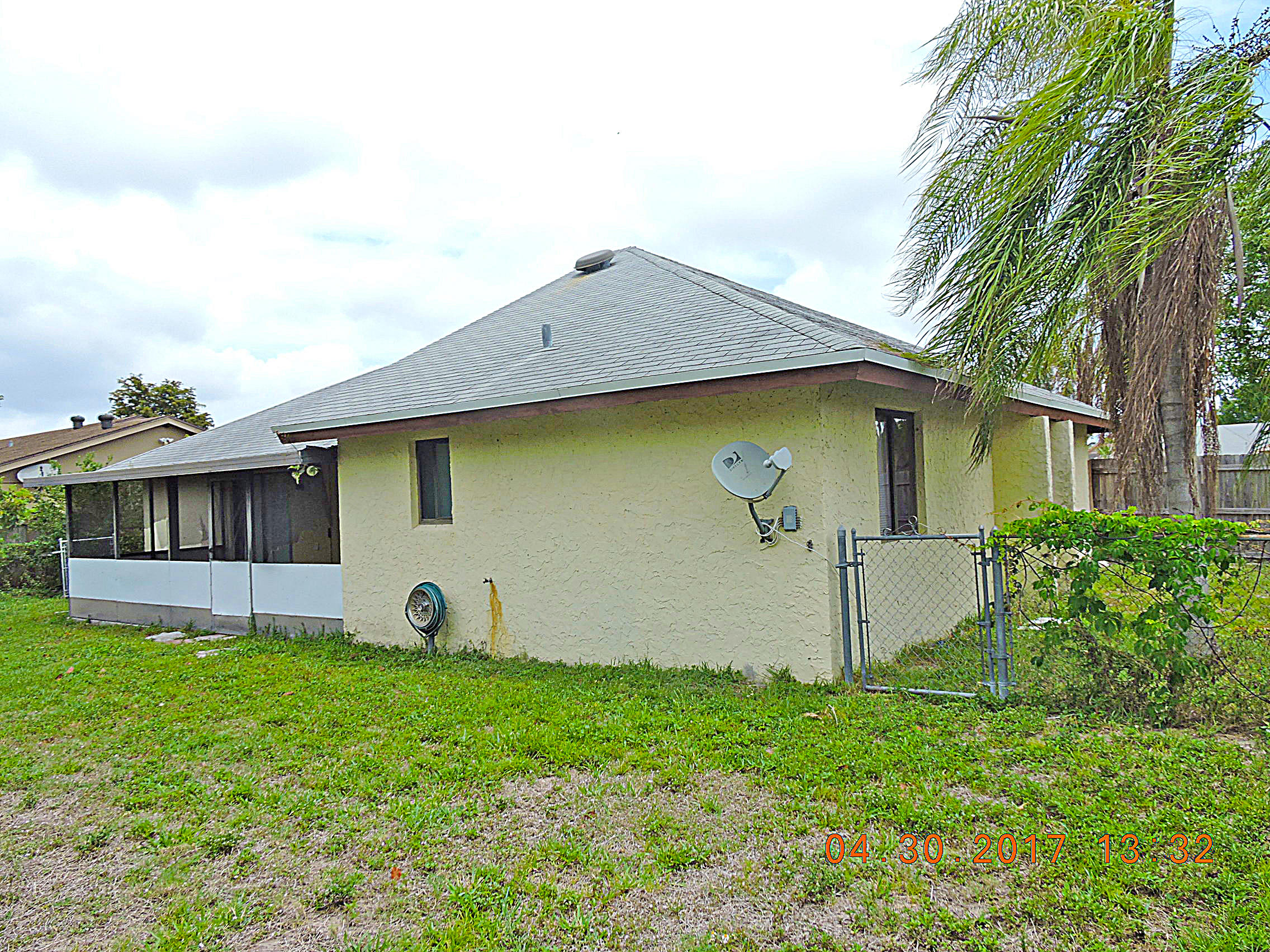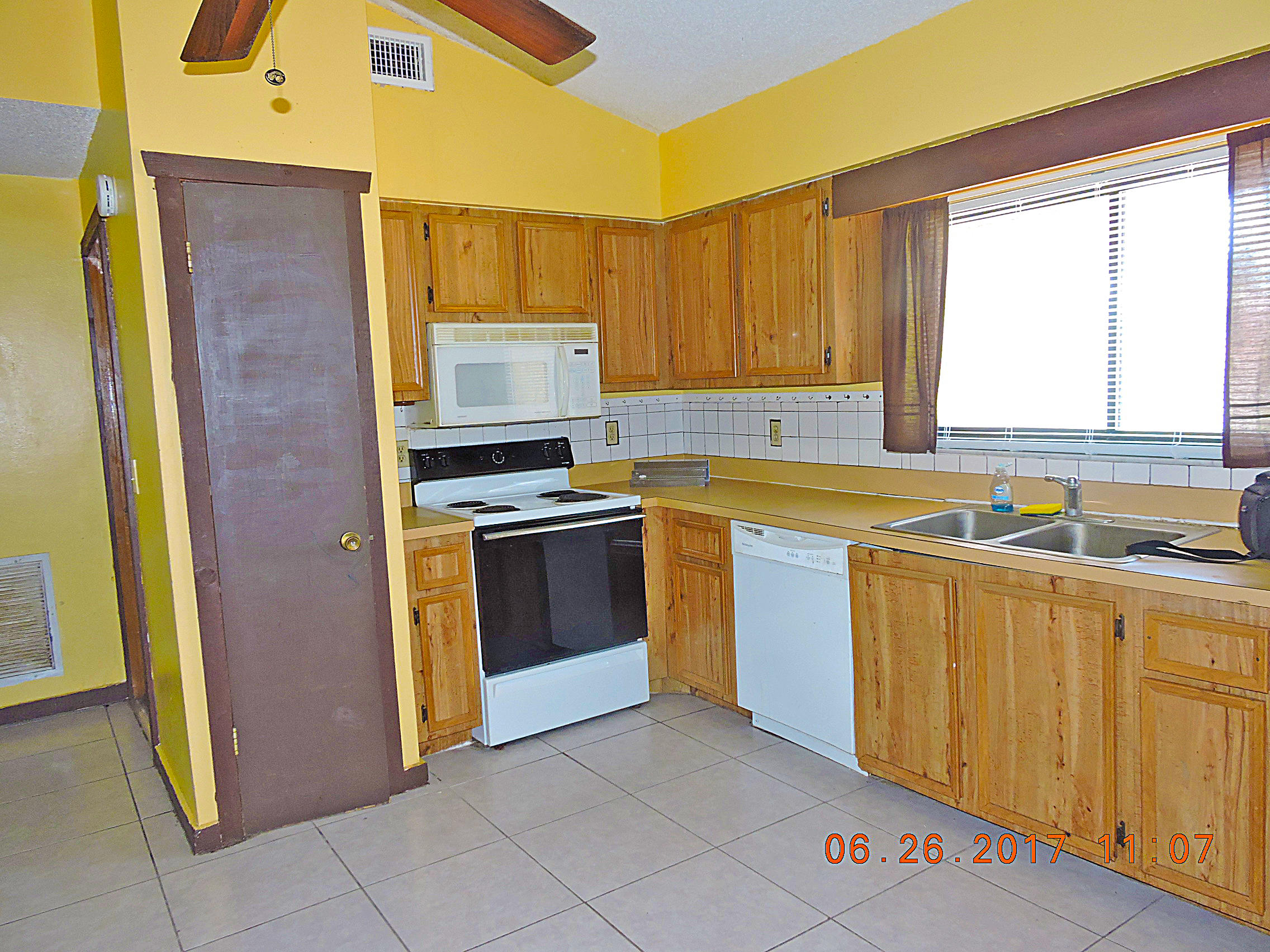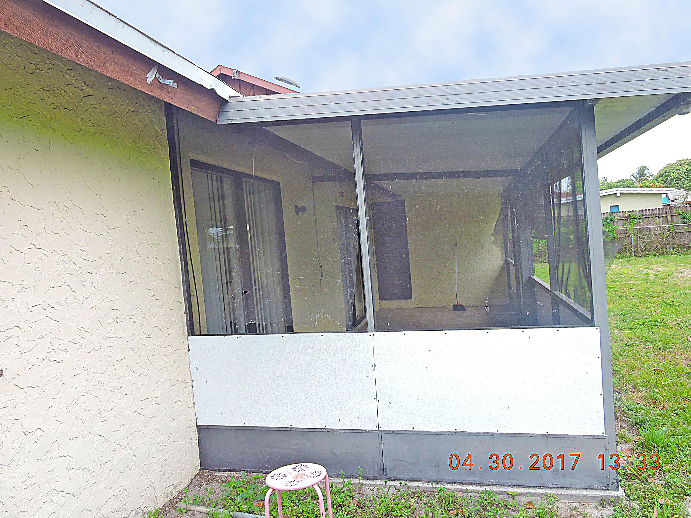 This split floor plan 3 bed 2 bath home has a 2 car garage and screened patio area with plenty of yard space. Property needs work but has great potential for a do it yourself type of family or a handyman. There is also a bonus room as the formal dining room has been converted into a fourth bedroom. Guest bathroom leads into the patio area which is great for when you entertain. The kitchen has an eat in area and looks out over the living room and the living room has two sliding doors that lead out to the screened patio area. Plenty of parking and front yard space as well. This home is in need of some major TLC, but once completed will be a great value
